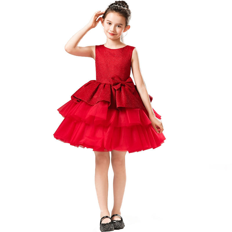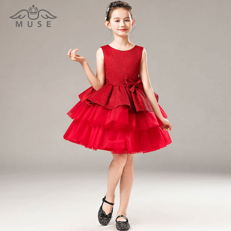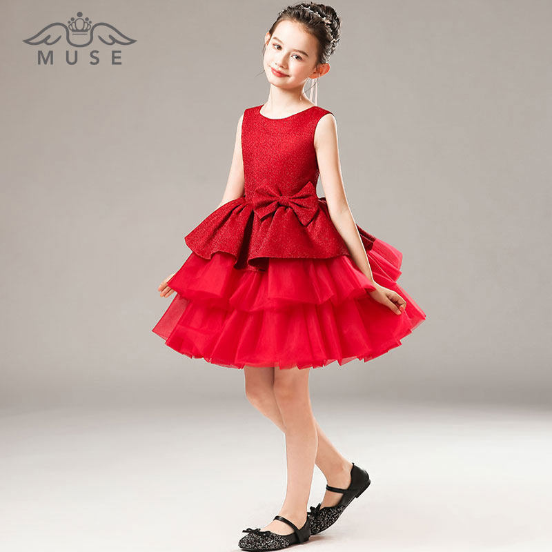 MUSE儿童公主裙女童红色钢琴演出服生日写真洋气蓬蓬纱主持走秀夏