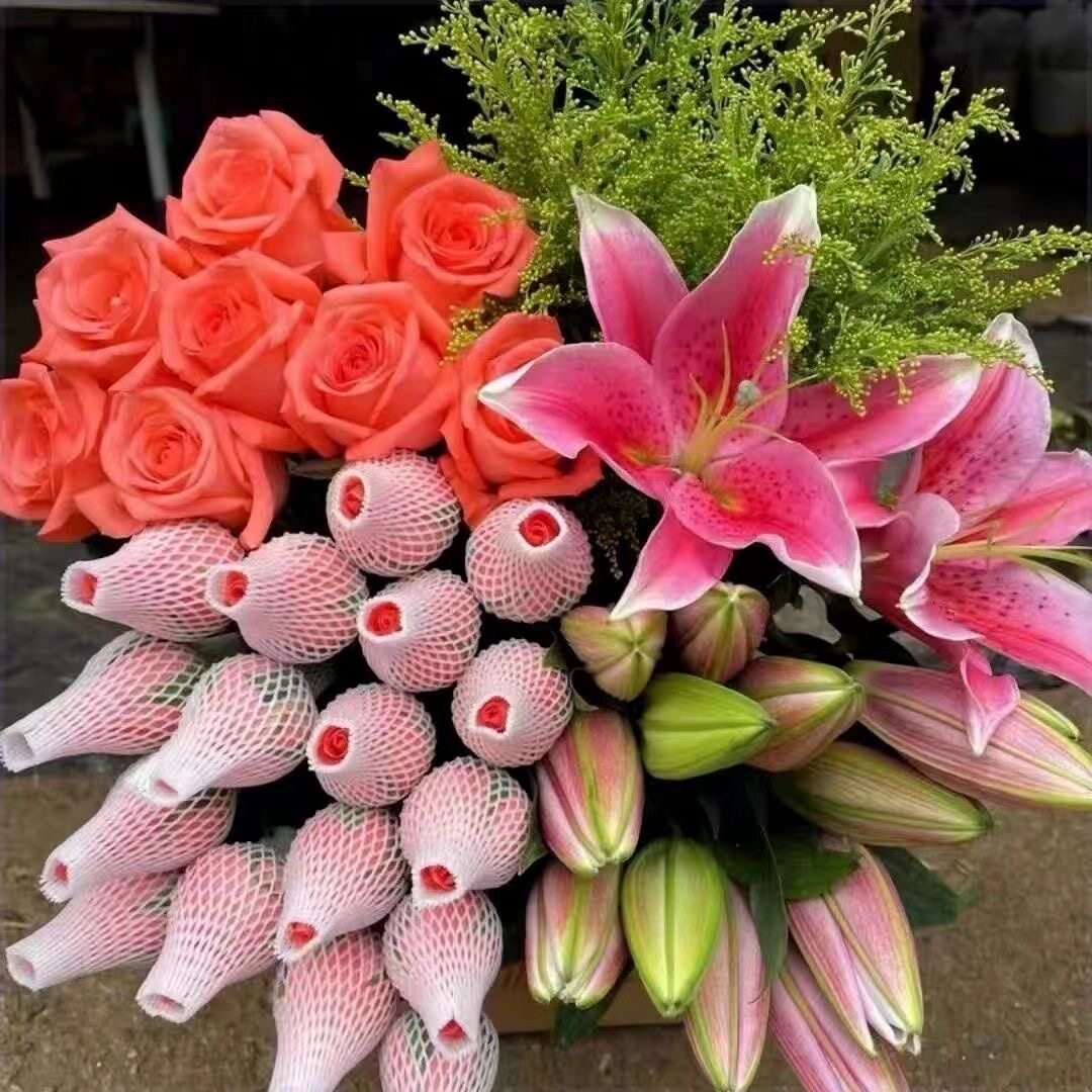 【鲜花4件套9.9】香水百合玫瑰康乃馨向日葵花束七夕礼物鲜花批发