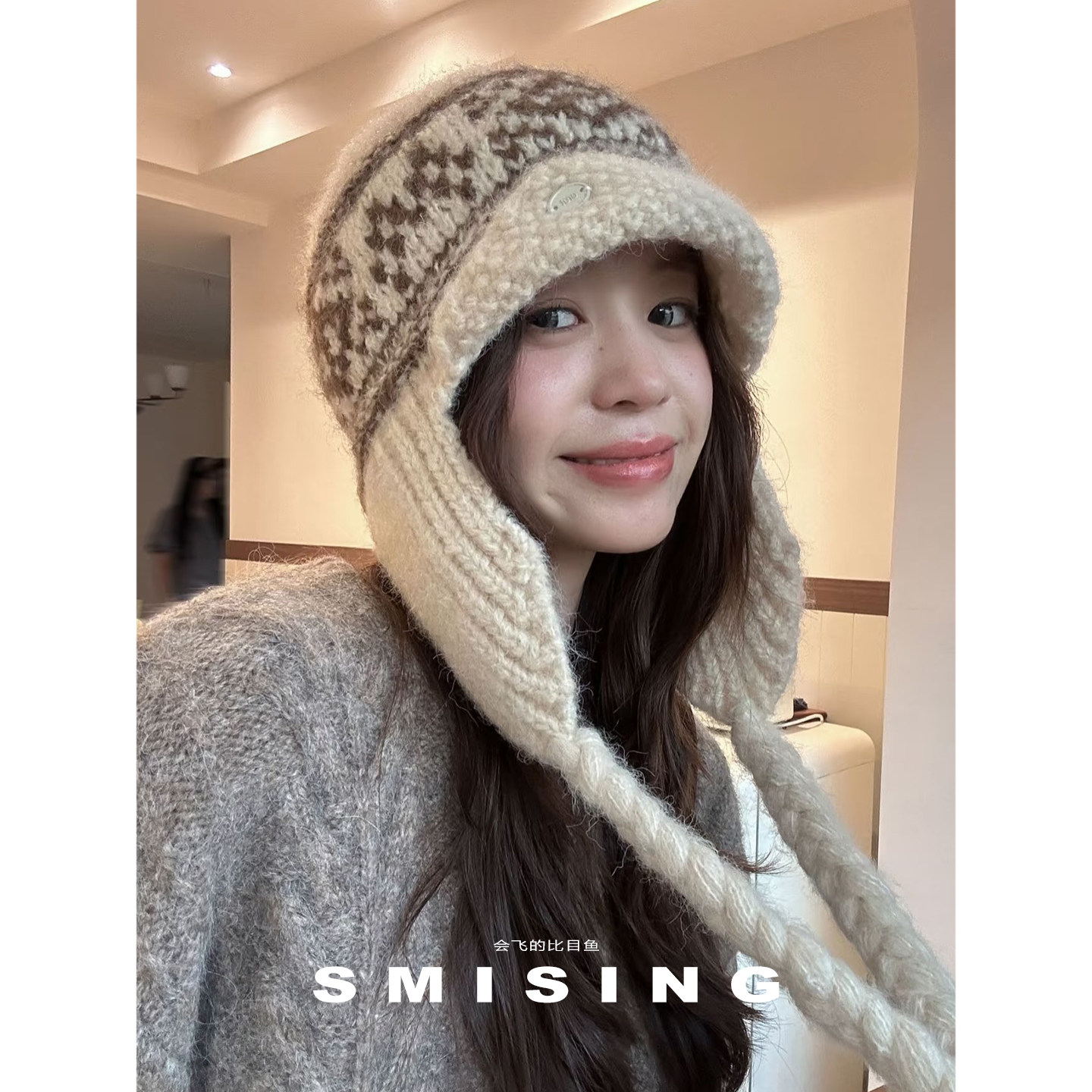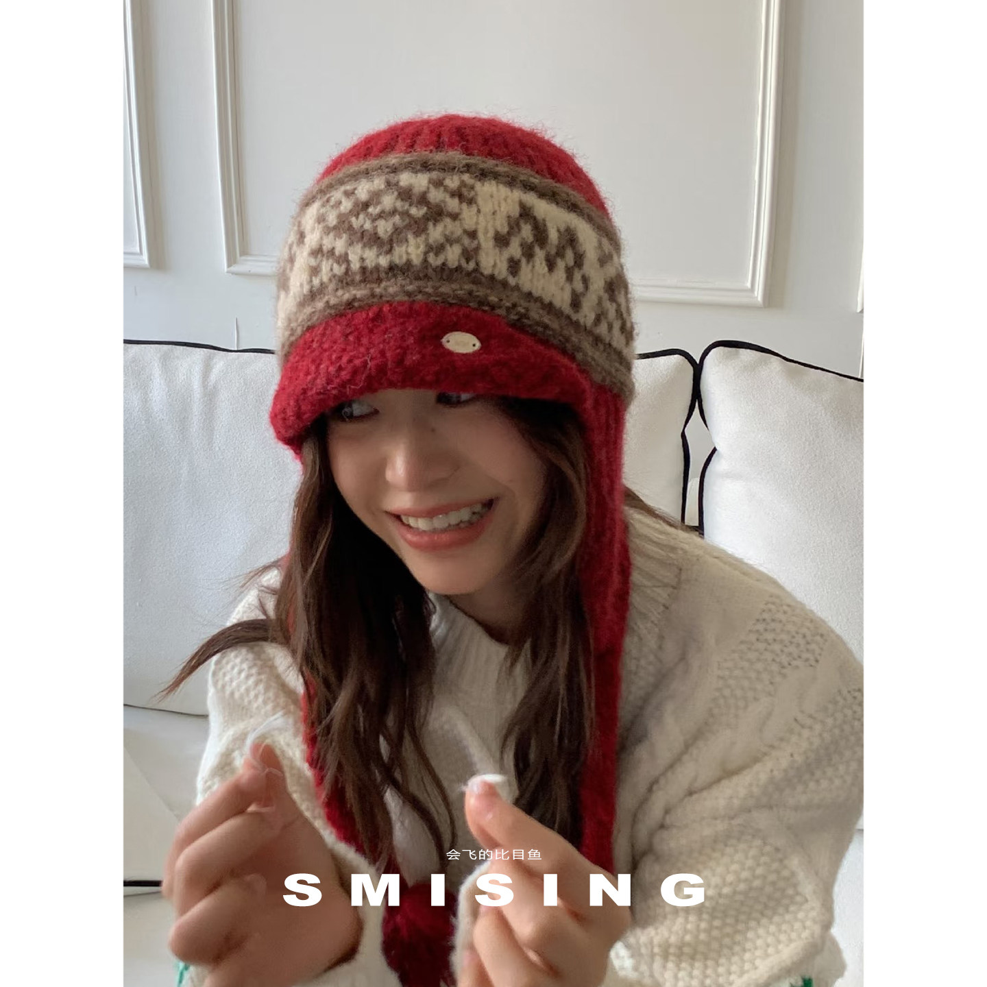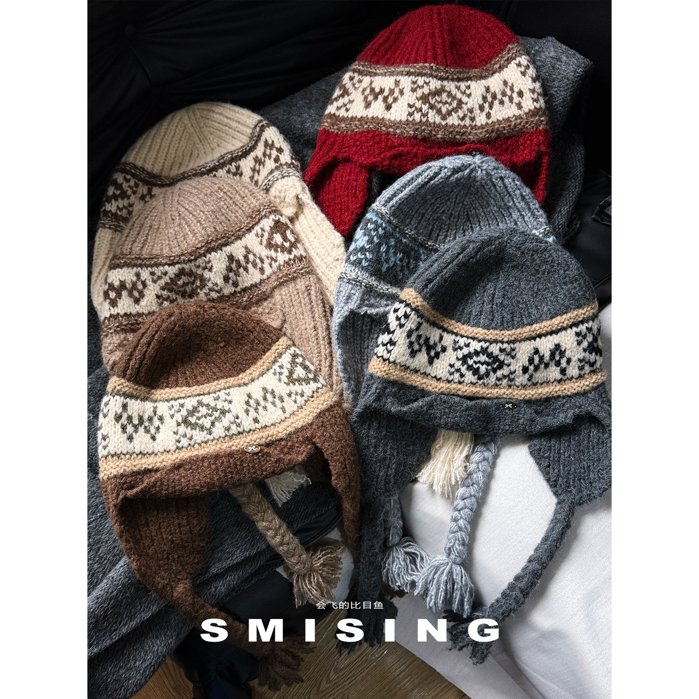韩版费尔岛提花毛线帽女秋冬保暖护耳针织帽学生户外防寒雷锋帽潮