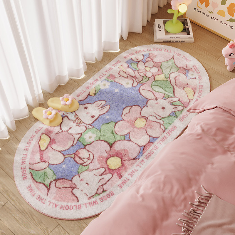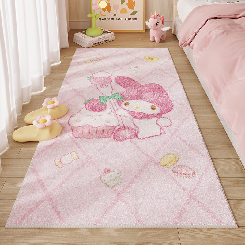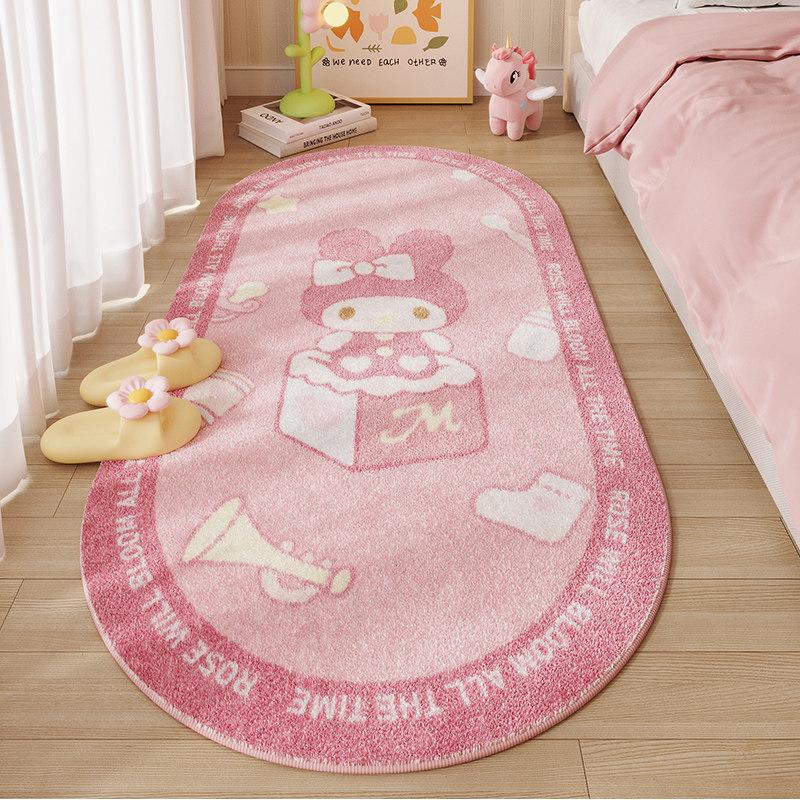 卧室地毯少女ins风长条毛绒卡通爬行G垫儿童房床边毯加厚防摔地垫