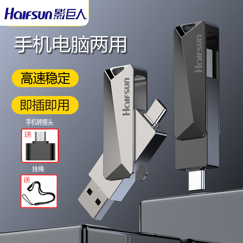 影巨人U盘手机电脑两用typec双接口大容量学生办公高速车载优盘