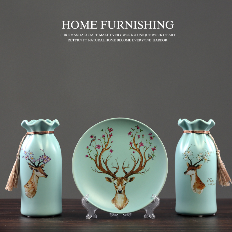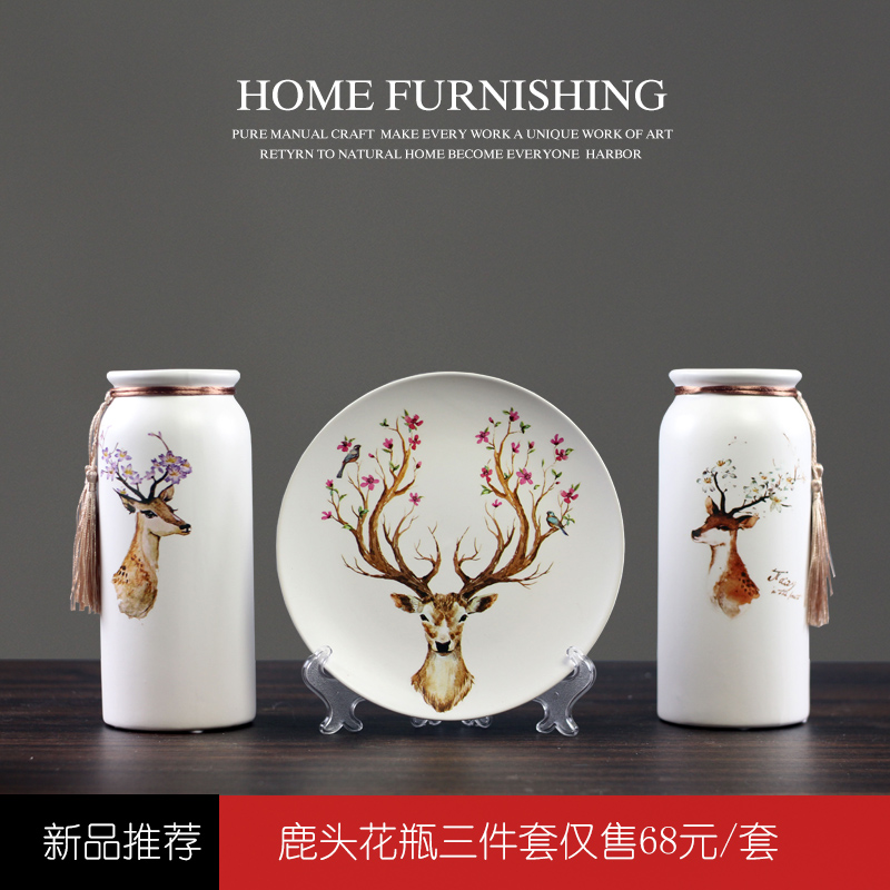 美式创意简约陶瓷花瓶三件套客厅餐桌电视柜酒柜摆件欧式家居装饰