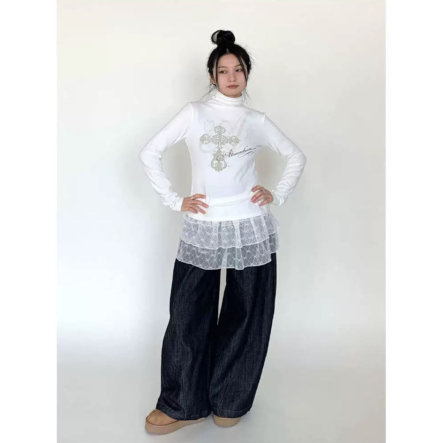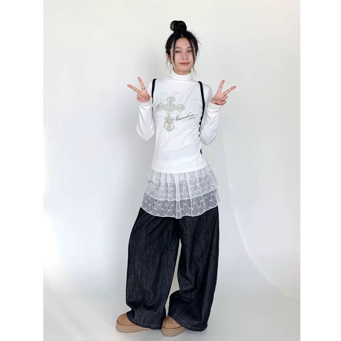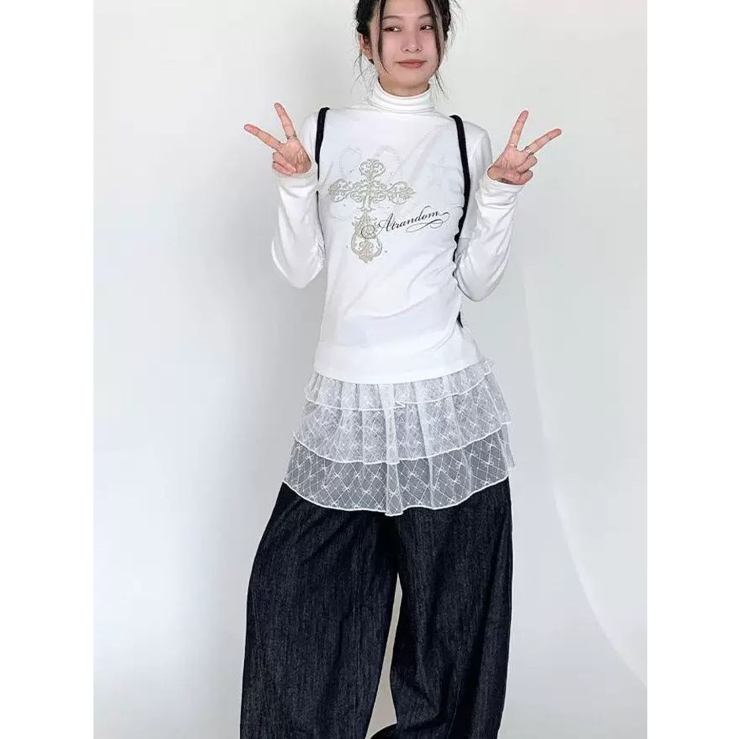蕾丝屁帘蝴蝶结短款叠穿神器下摆裙帘三层蓬蓬蛋糕裙A字型半身裙
