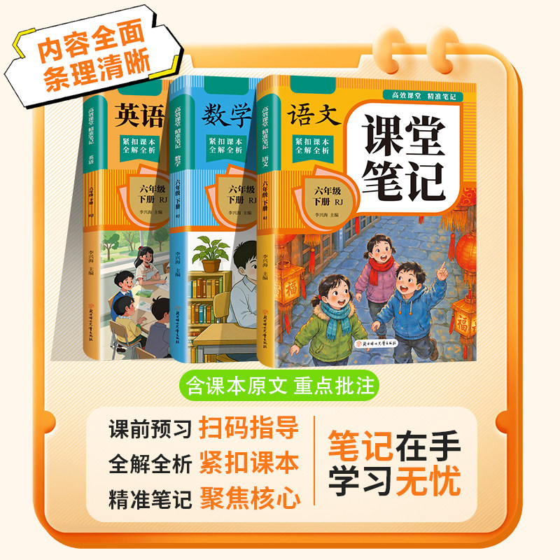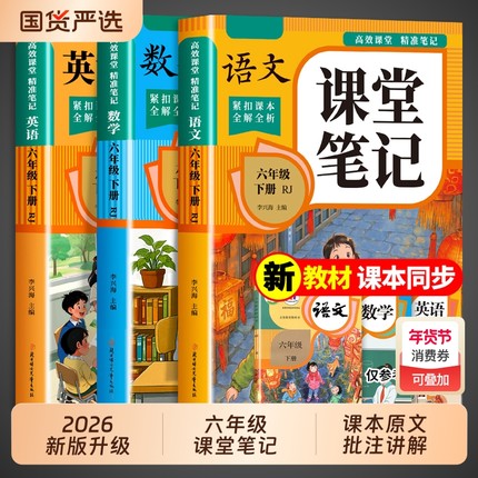2026新版六年级下册课堂笔记人教版语文数学英语全套预习同步课本书教辅资料六下教材笔记解读全解小学生6年级下状元学霸随堂笔记
