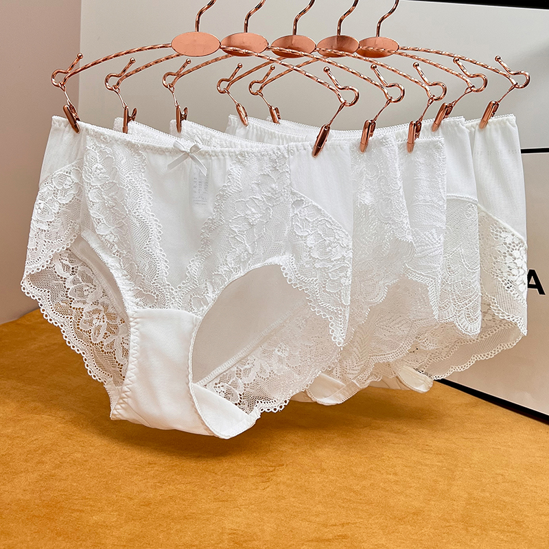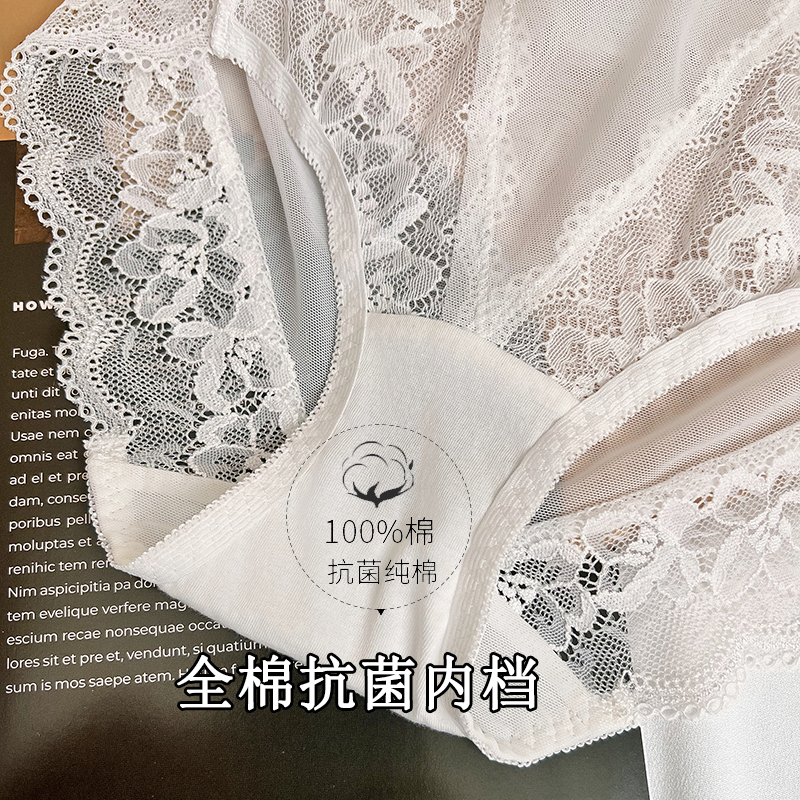 白色内裤女纯欲大码蕾丝莫代尔中高腰胖妹妹性感无痕棉裆2025新款