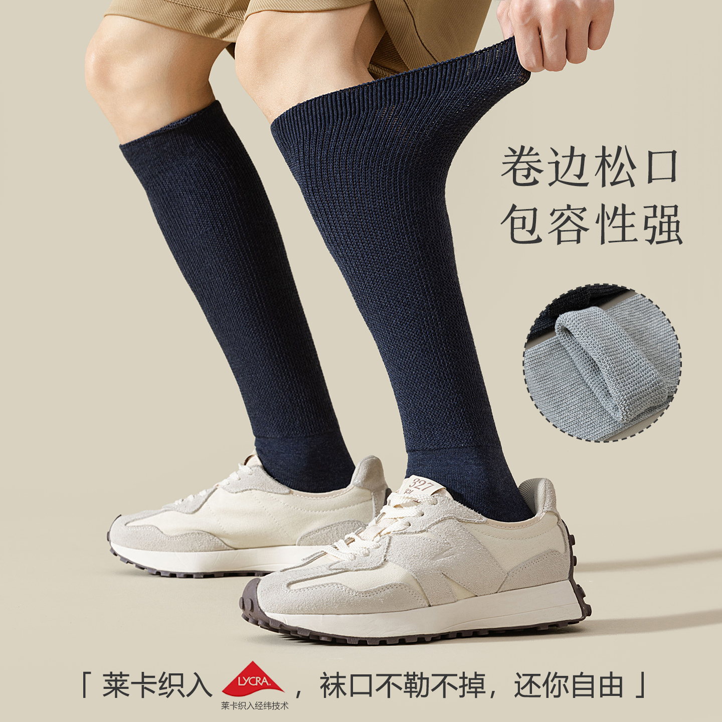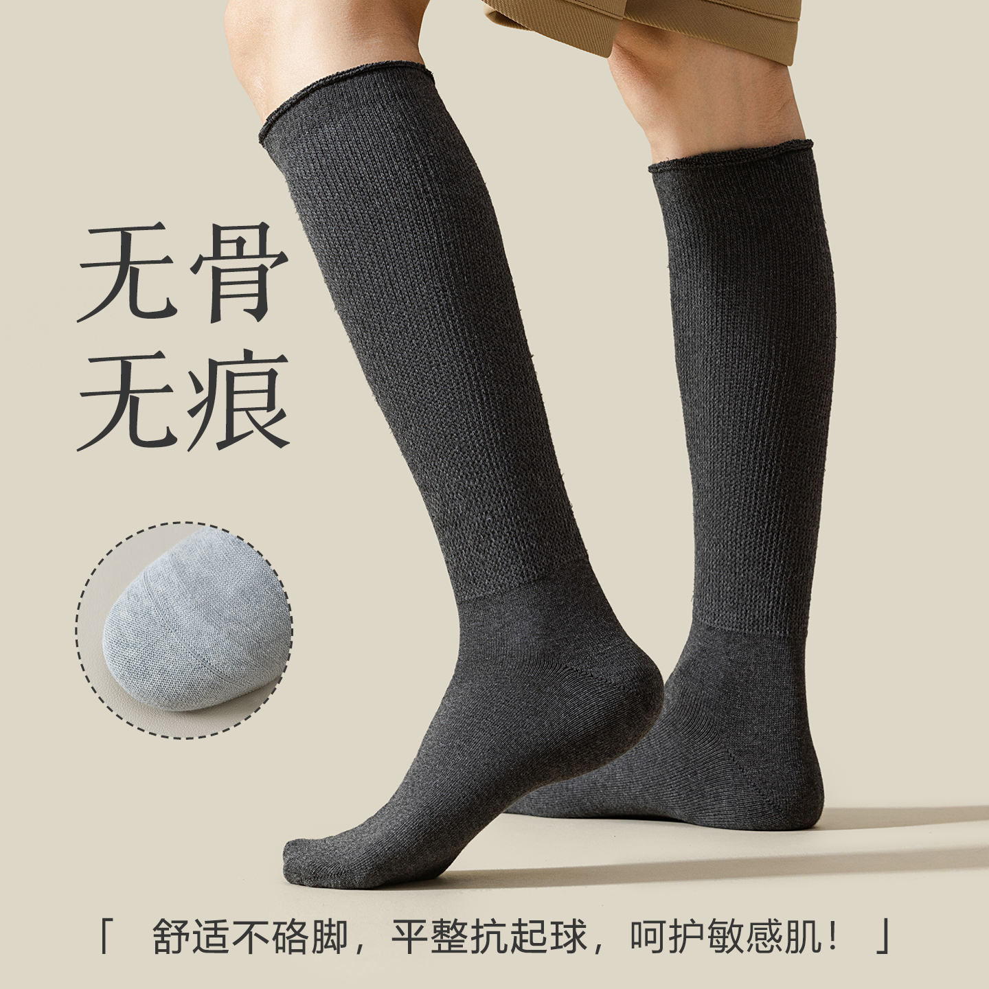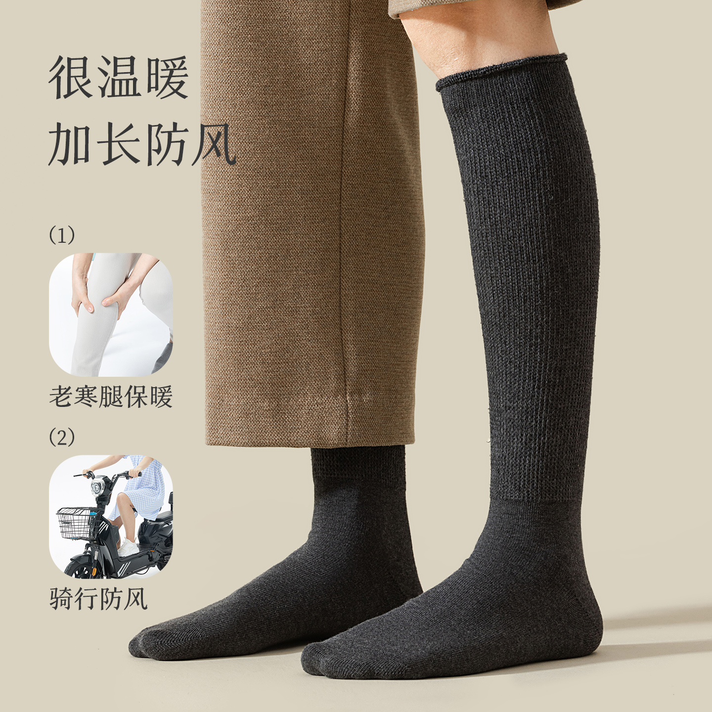 纯棉长袜子男士小腿袜高筒秋冬加厚保暖松口骑行防风黑色老寒腿袜