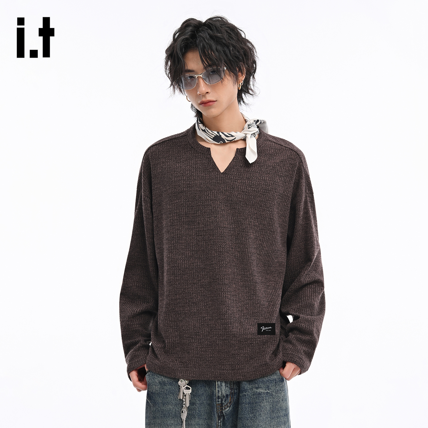 it :5cm/FIVECM复古休闲亨利领针织长袖t恤男士春秋百搭宽松上衣