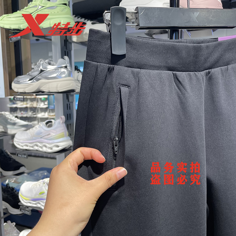 特步运动裤长裤女2024秋新款针织束脚百搭黑色休闲裤976328630072