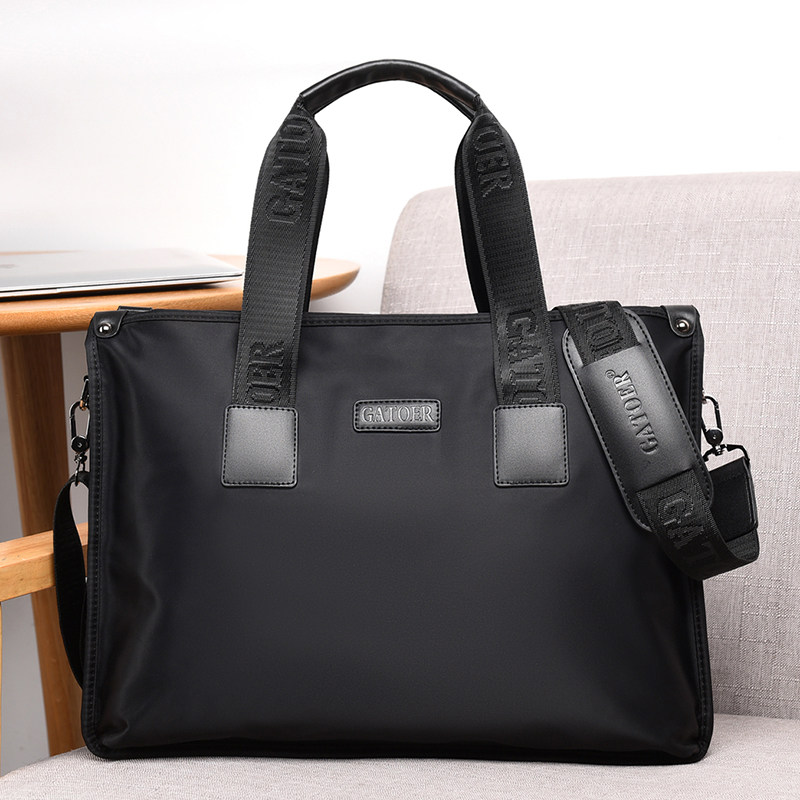 商务手提包男包大容量帆布斜挎包横款青年牛津布电脑包公文包男