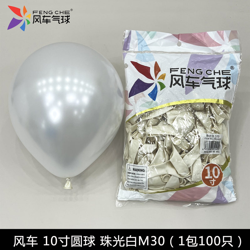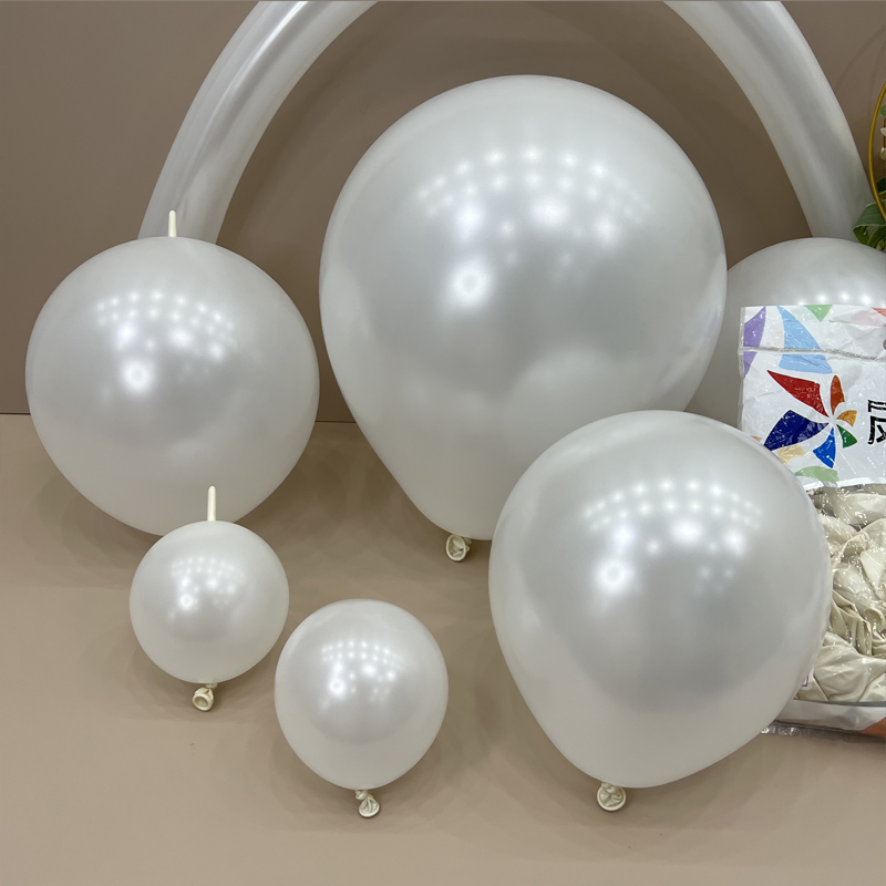 风车气球 5/10/12/18寸珠光白 珍珠白亮光白加厚圆形长条尾巴气球