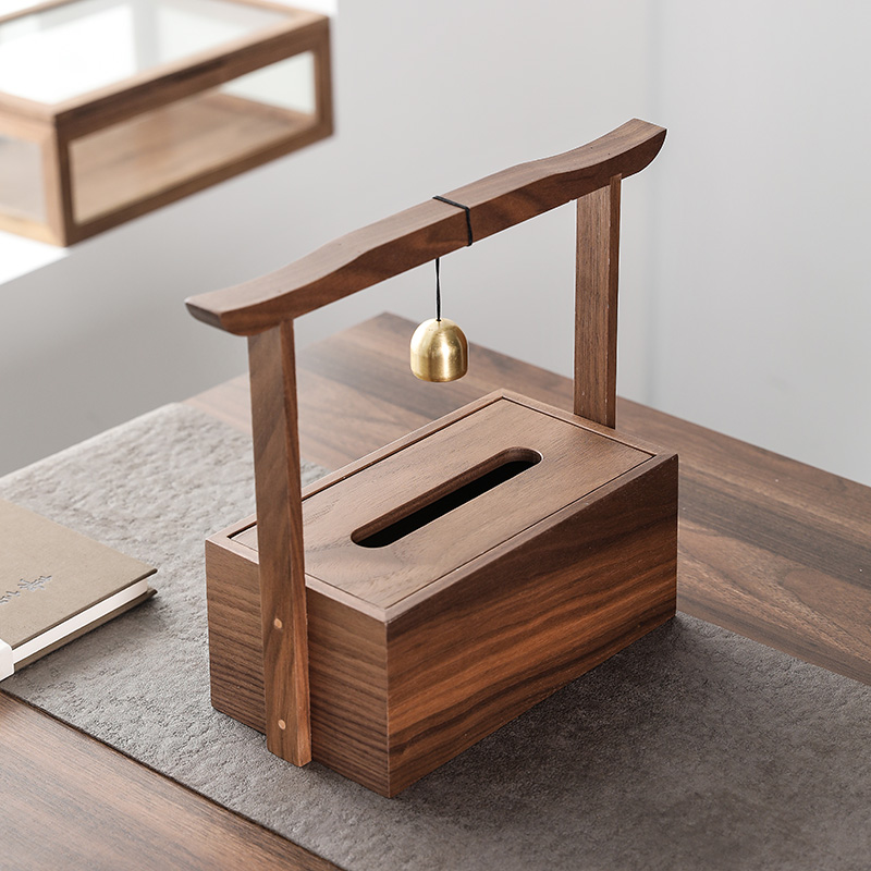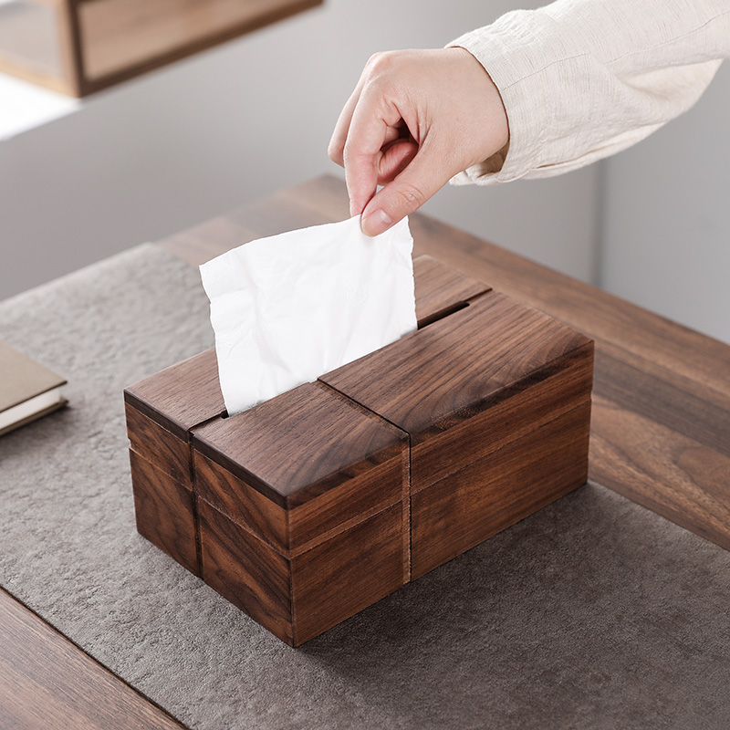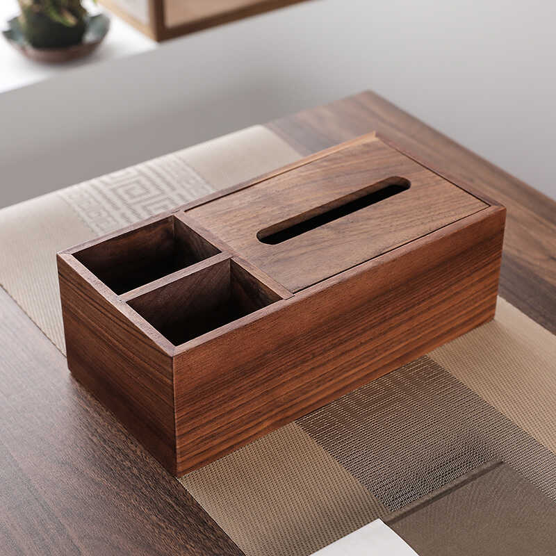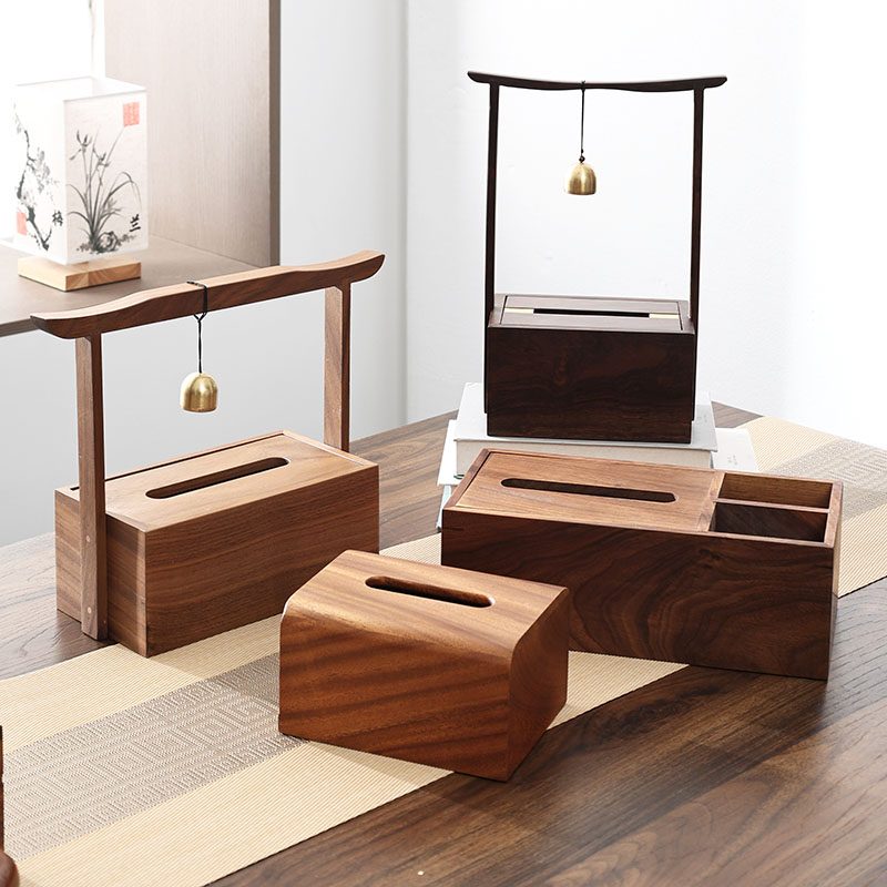 黑胡桃木实木纸巾盒茶台茶桌抽纸盒餐客厅轻奢中式家用木制纸抽盒