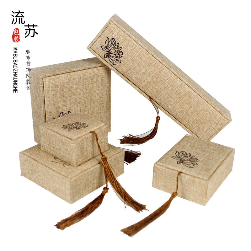 高档佛珠亚麻布2.0手串108手链项链盒首饰包装盒子翡翠玉器文玩盒