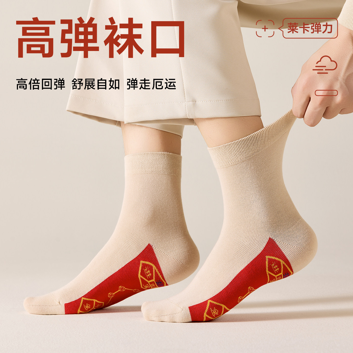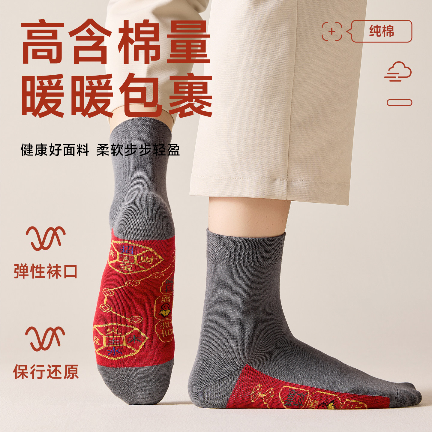 猫人脚踏七星红袜子男士本命马年