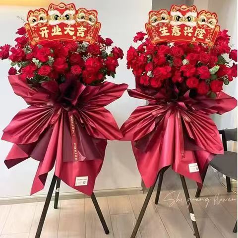 新款金色醒狮鸿运当头开店之喜开业大吉卡片花店花束简约花篮贺卡