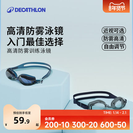 迪卡侬高清防雾防水近视泳镜