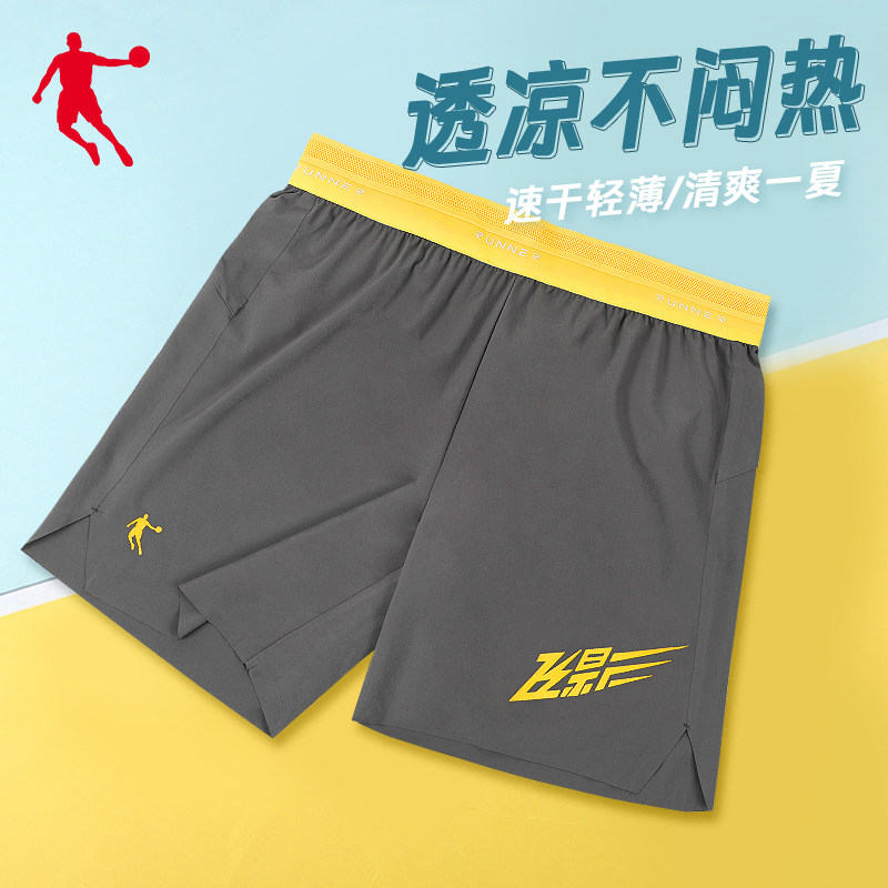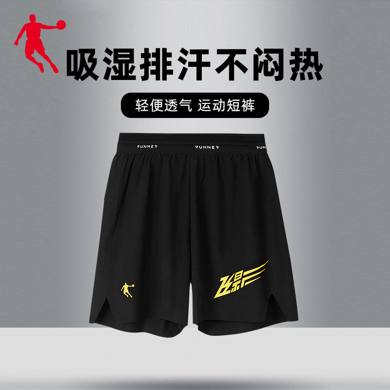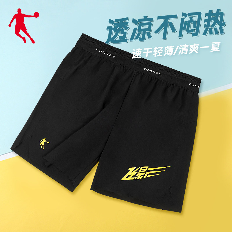 中国乔丹运动短裤男飞影2025夏季休闲梭织运动裤跑步健身五分裤