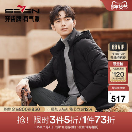 【白鸭绒】柒牌可卸连帽羽绒服男冬季新款休闲百搭保暖防寒厚外套