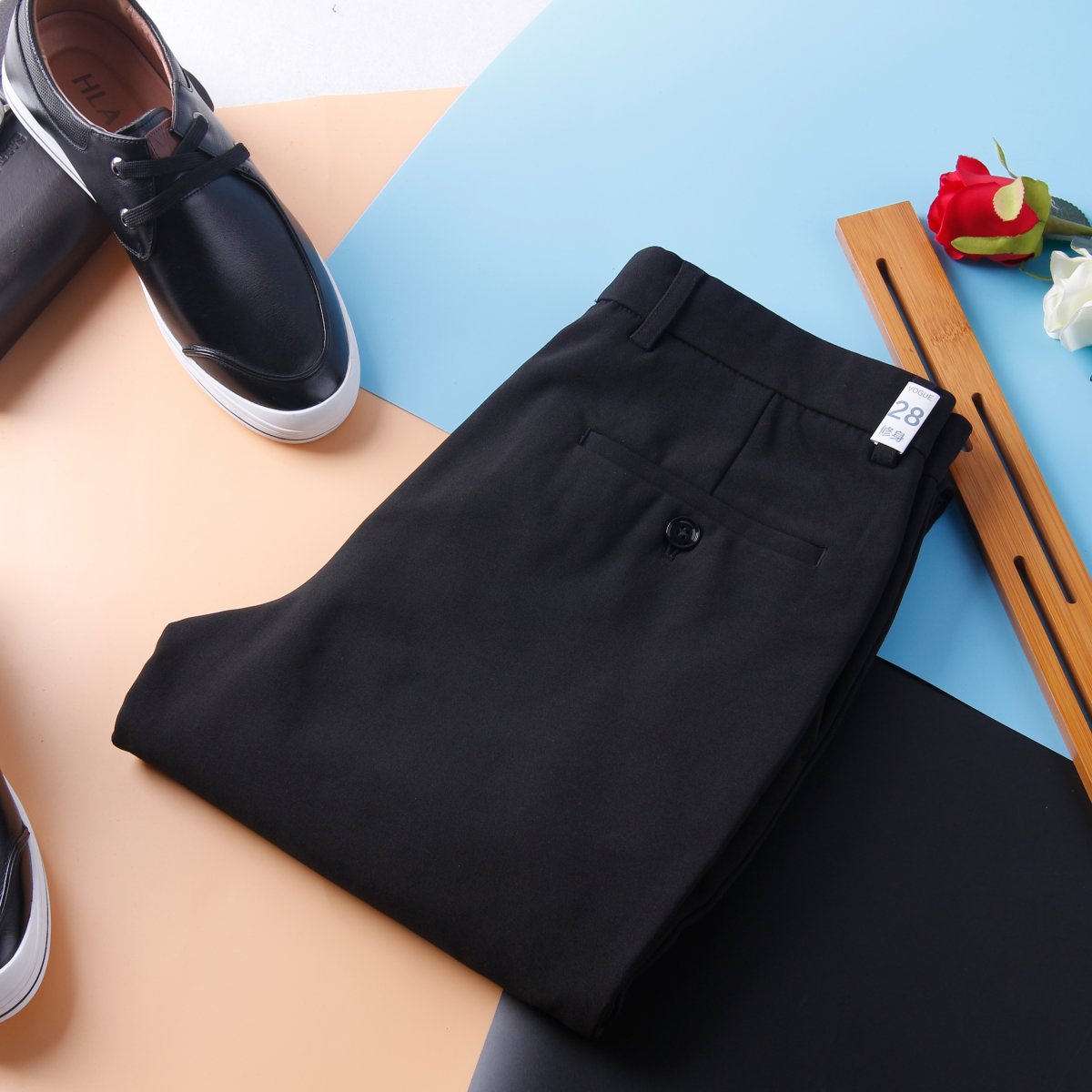 HL28227豆系列男士青年休闲裤修身黑色工装裤加薄绒秋冬款保暖