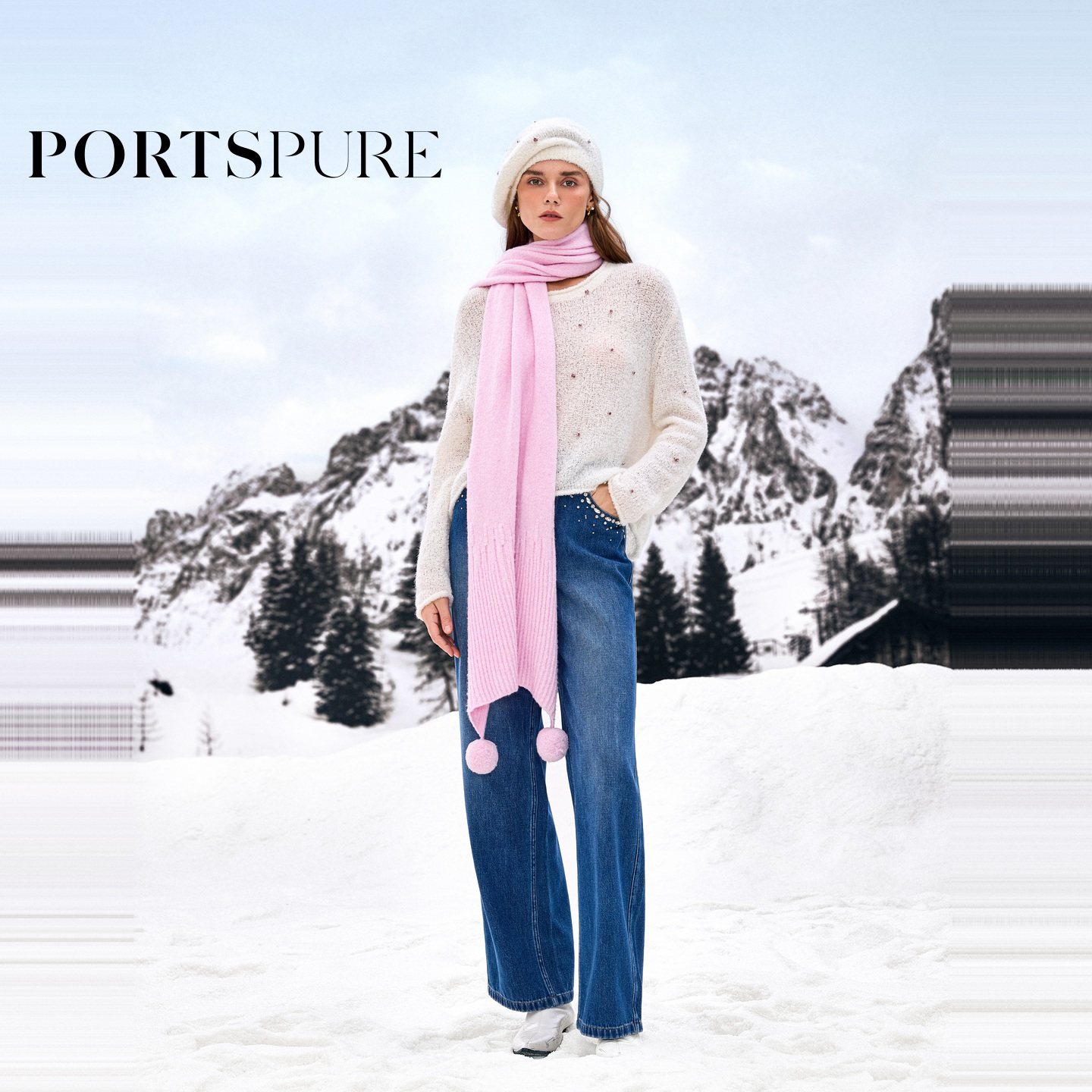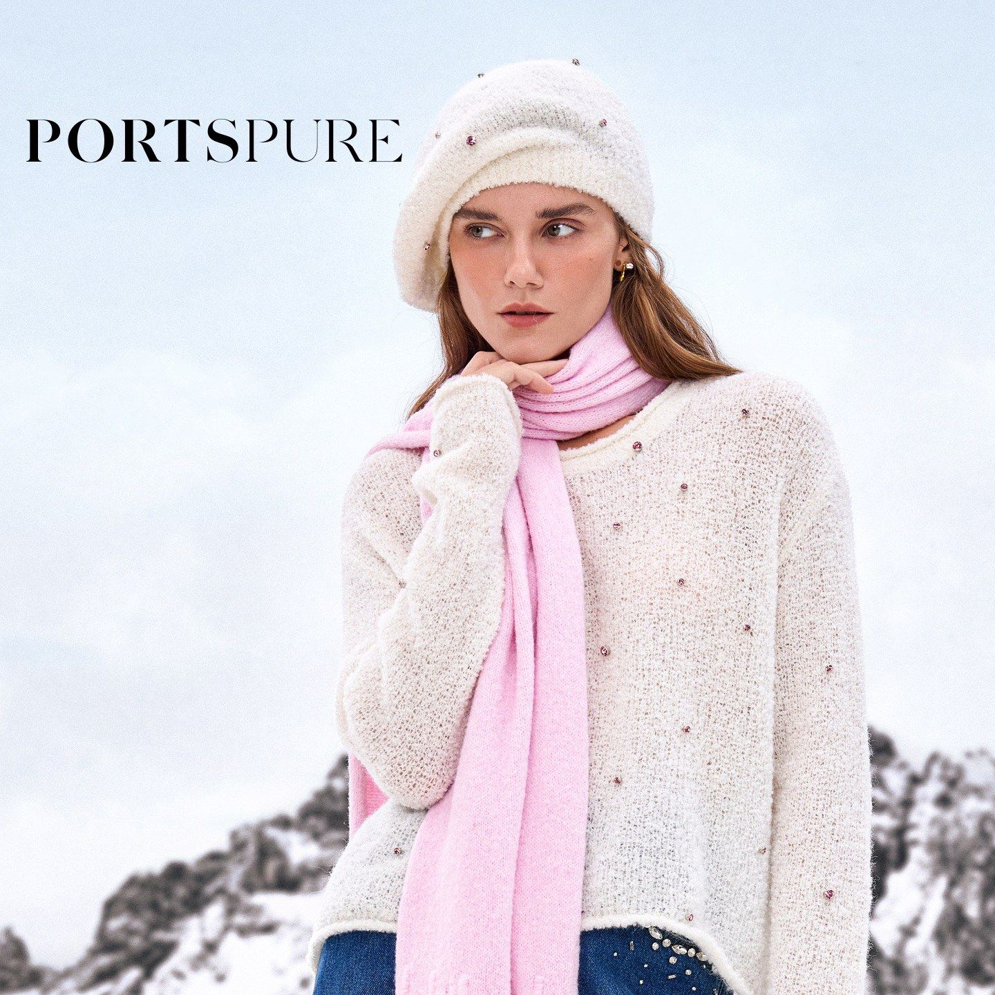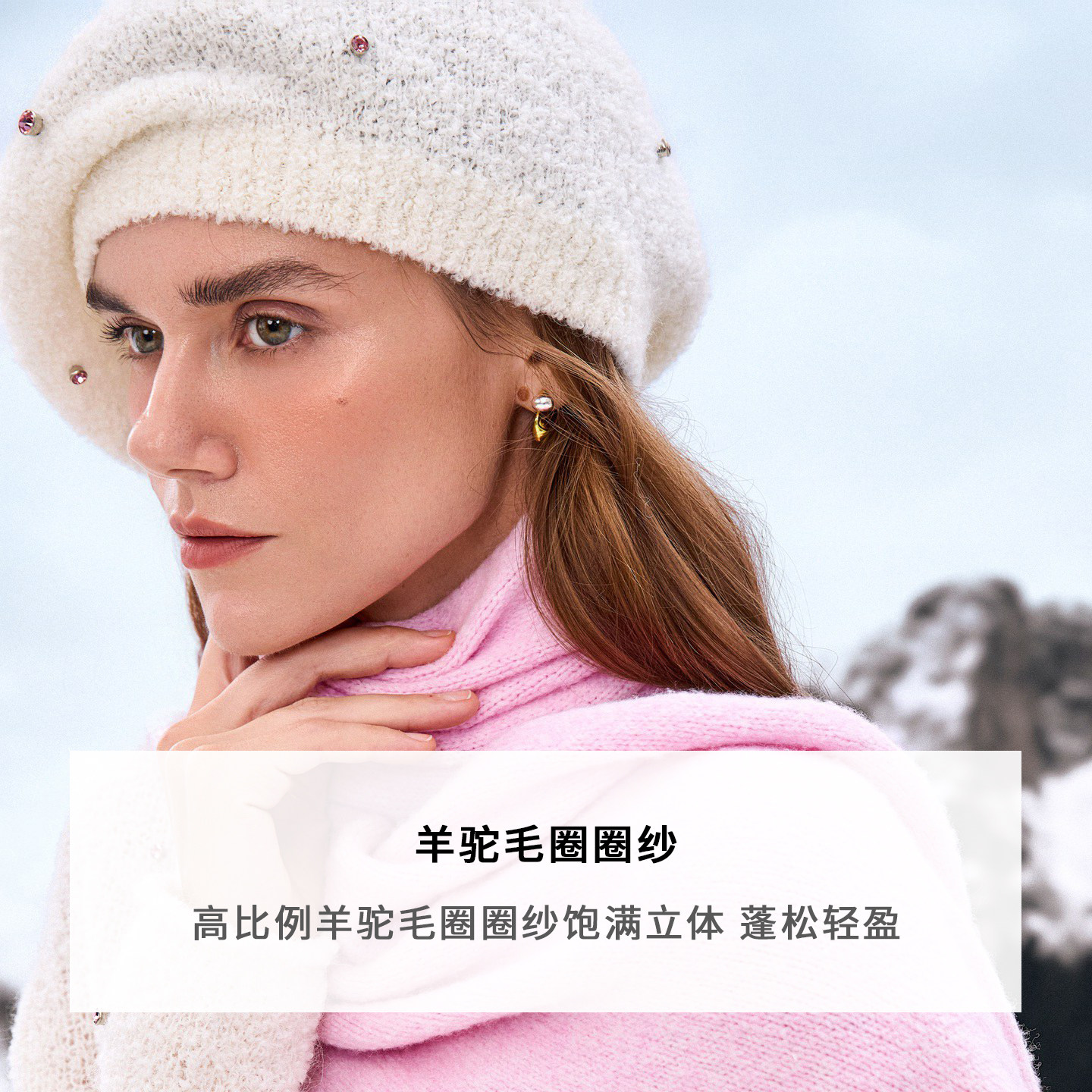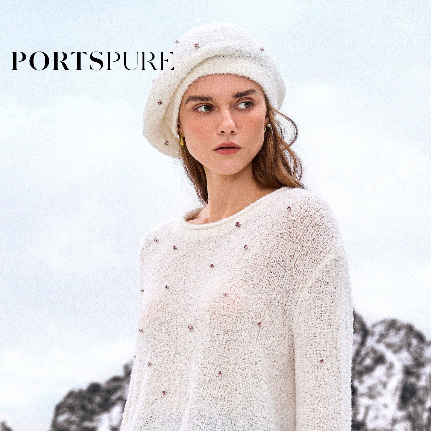 宝姿PORTSPURE女装2025秋冬新品精致优雅出街钻饰毛绒贝雷帽子