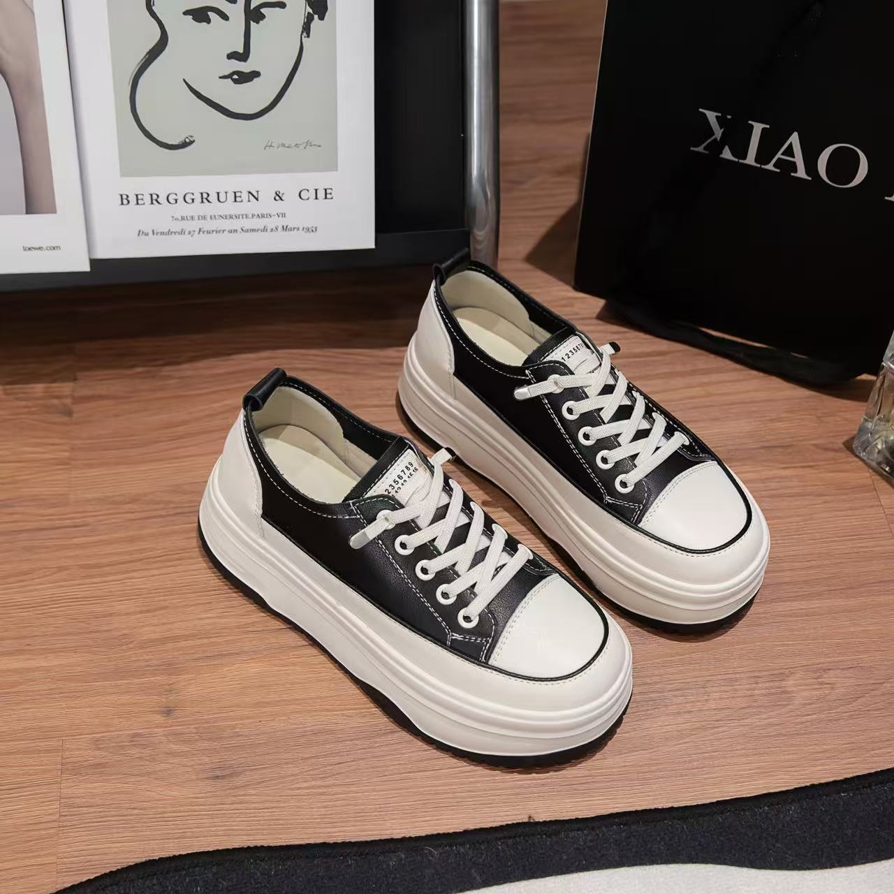 头层牛皮超轻发泡底懒人松紧带小白鞋女2025春季新款板鞋女单鞋