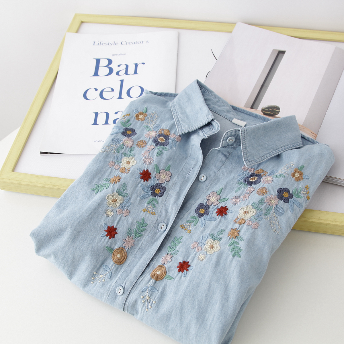 经典复古街头水系刺绣牛仔外套女长袖衬衫港风清新春秋精致小众