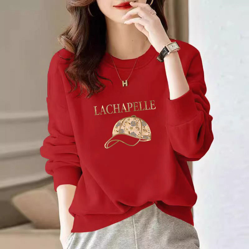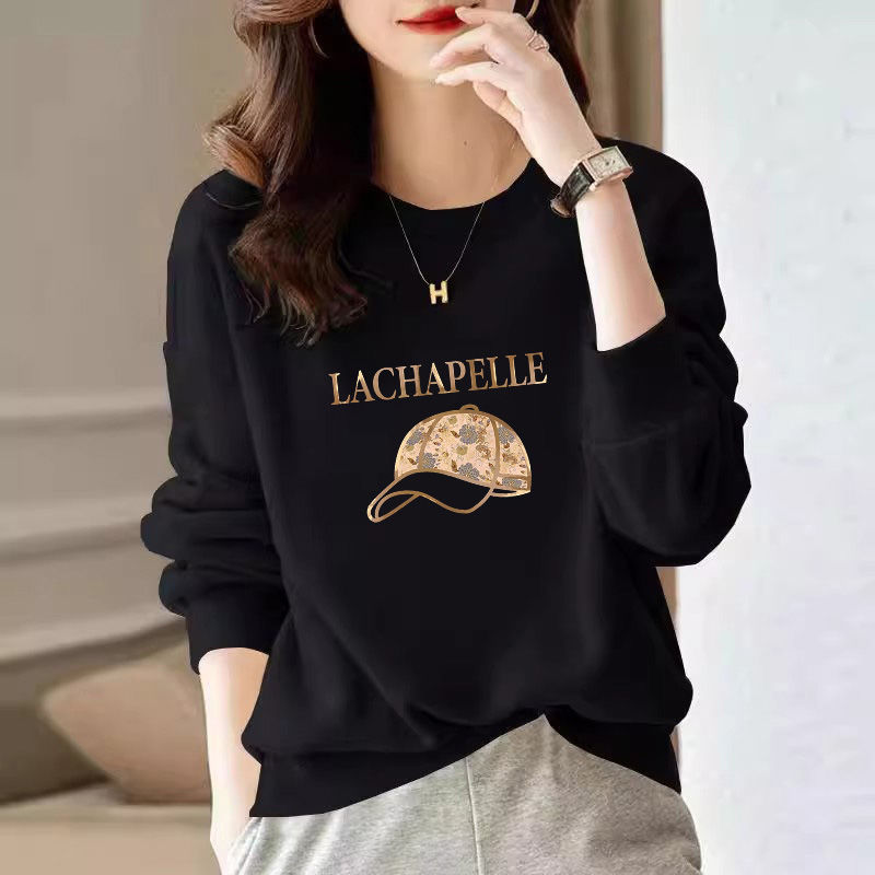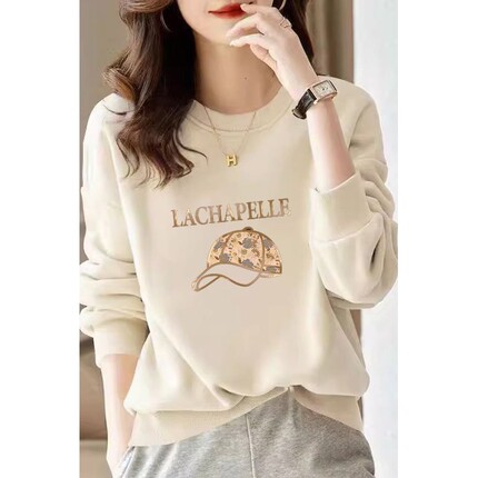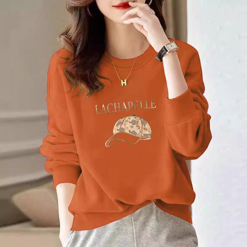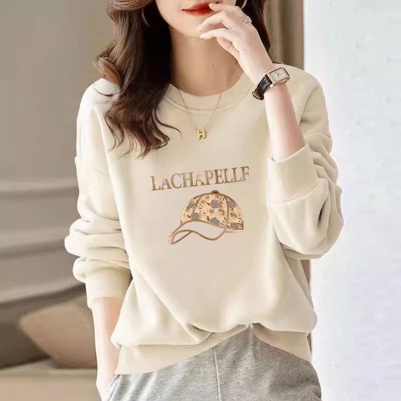 品牌100%纯棉女士长袖卫衣秋款上衣女宽松小个子打底衫春秋冬款新