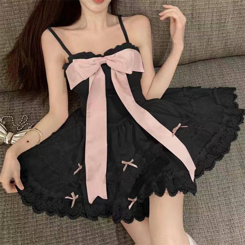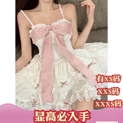 春装小个子150cm显高加小码女装XXXS别致吊带蕾丝连衣裙高腰蓬蓬