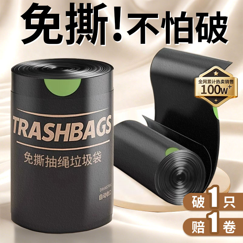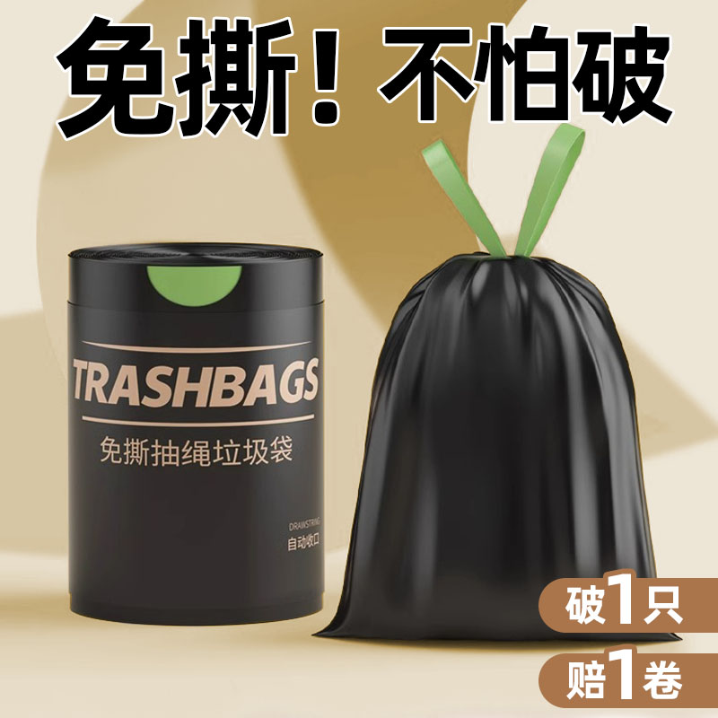 免撕抽绳垃圾袋家用手提式加厚厨房卫生间大号塑料袋子实惠装特厚