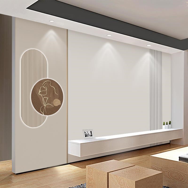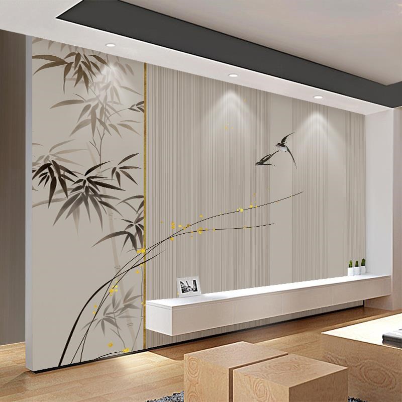 新中式电视背景墙布壁纸素雅定制格栅壁布客厅沙发墙W纸3d立体壁