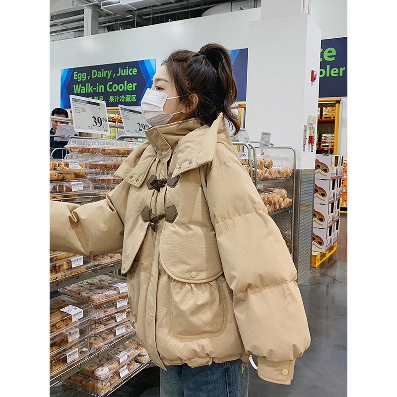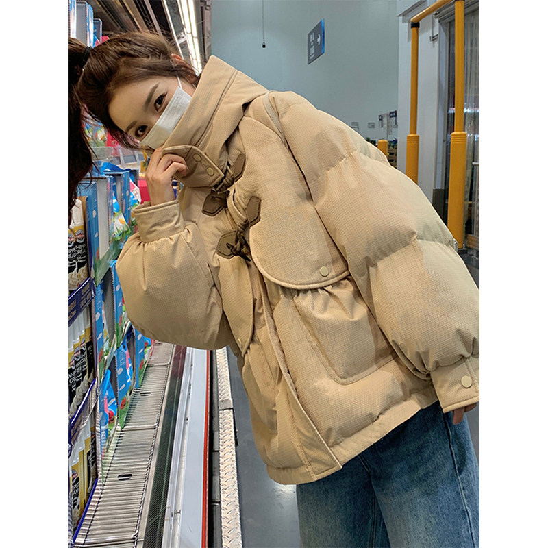 胖mm大码女装美拉德羽绒棉服女韩系高级感加厚百搭连帽面包服外套