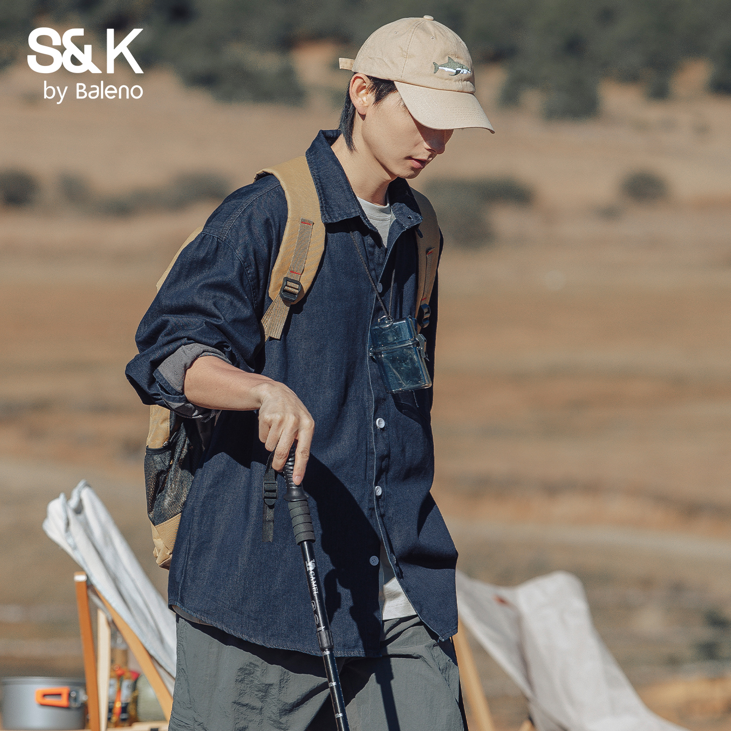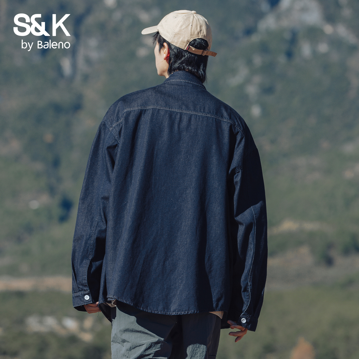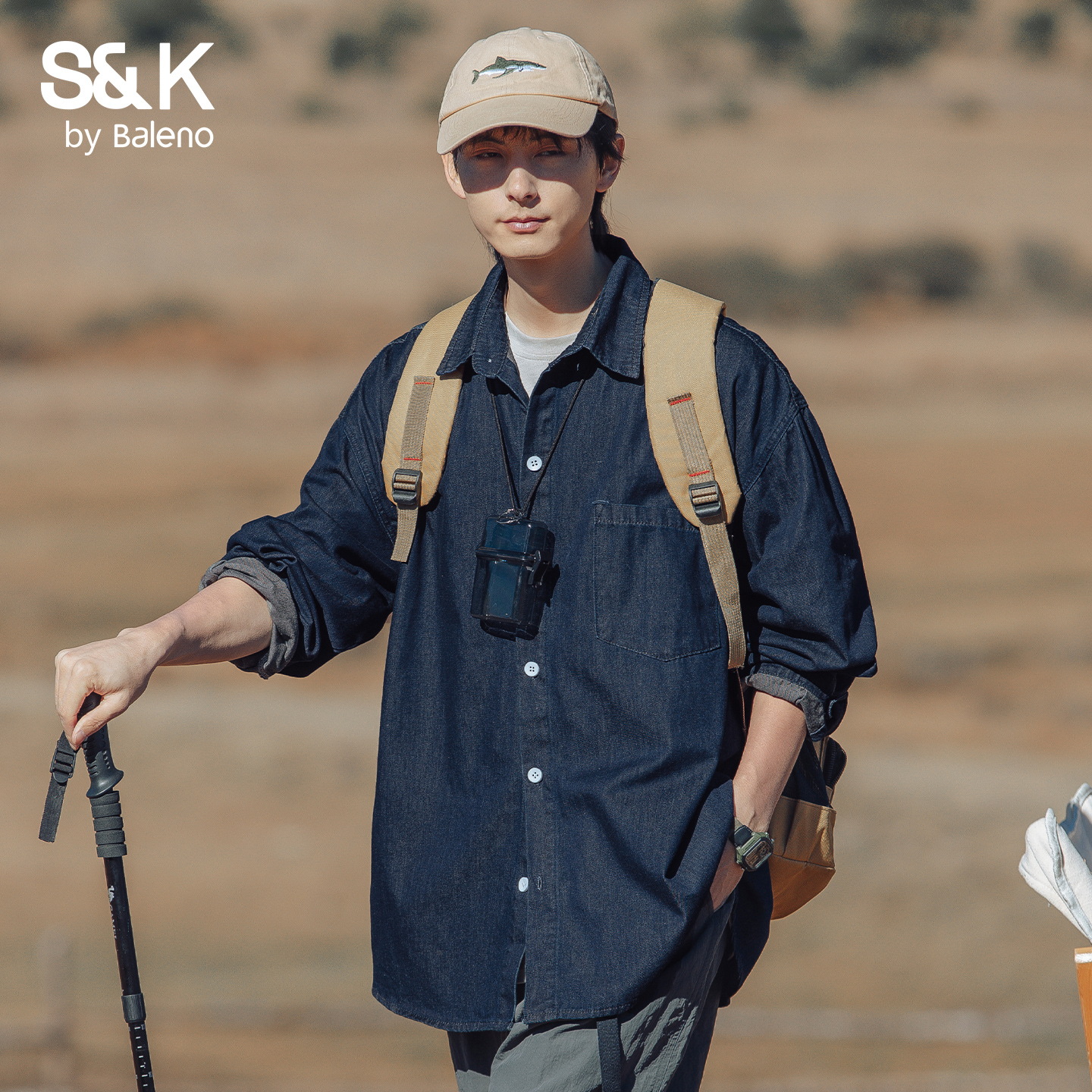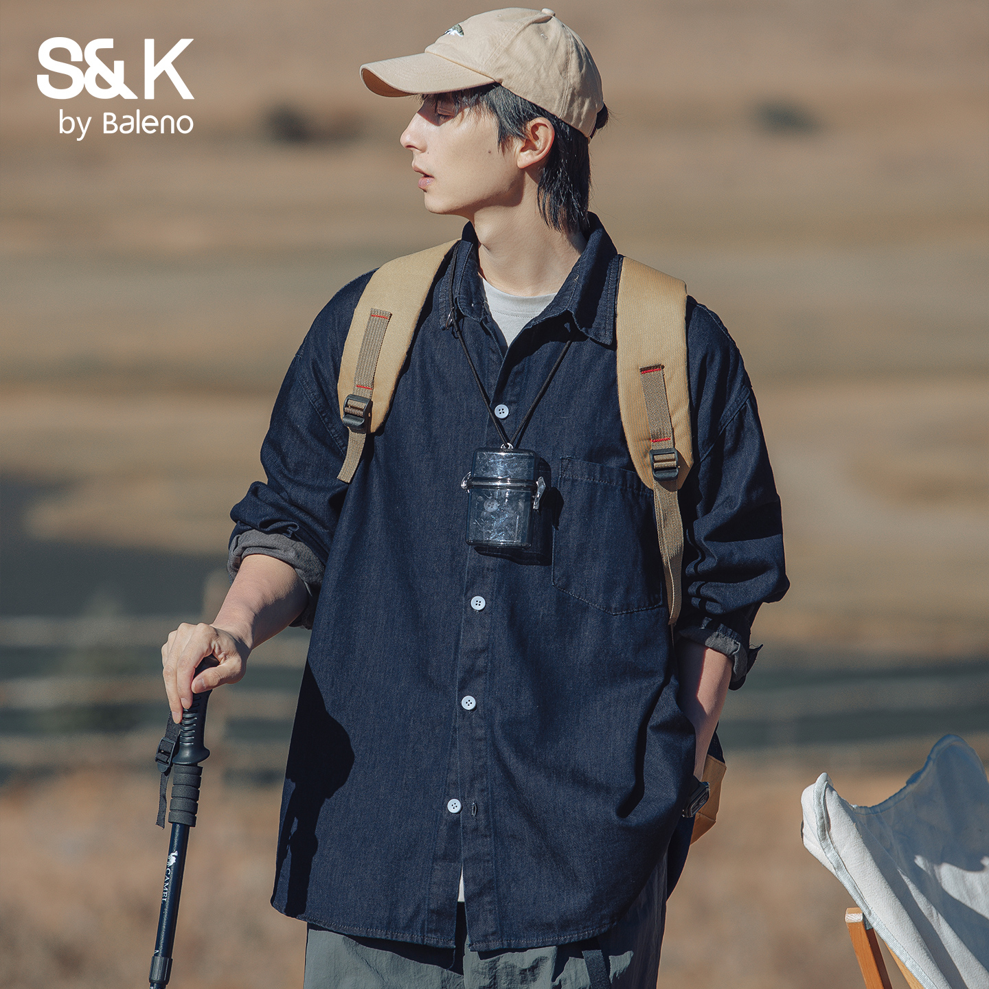 班尼路SK日系复古做旧长袖牛仔衬衫潮牌宽松休闲百搭外套上衣服MS