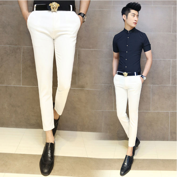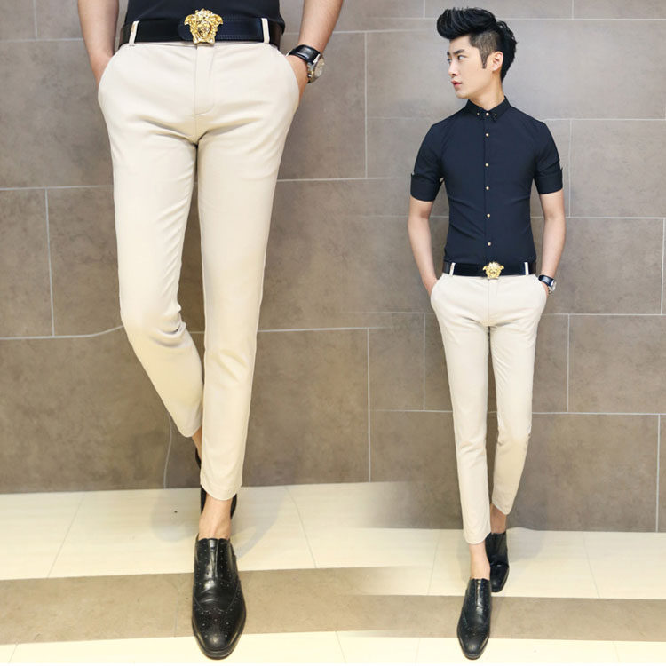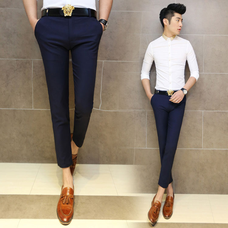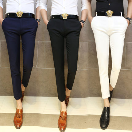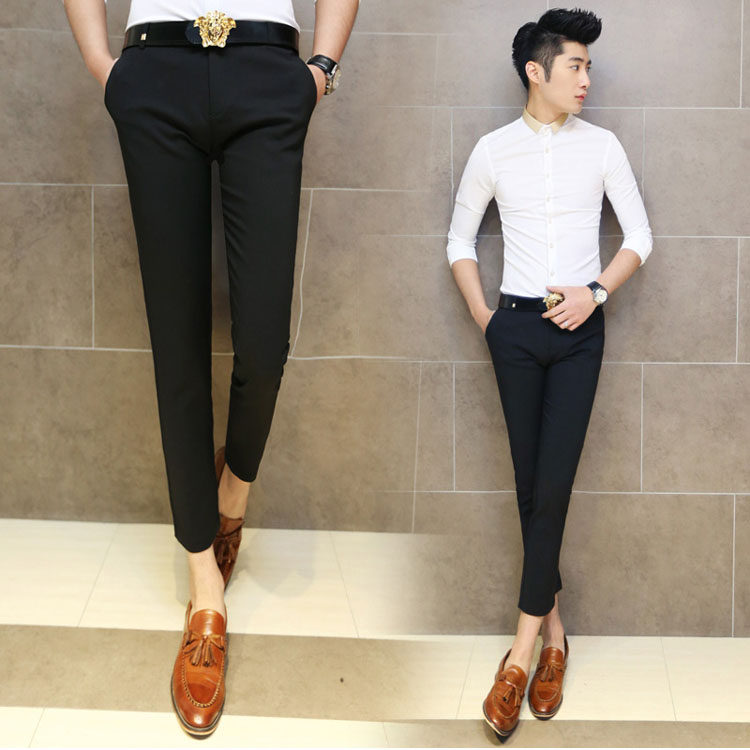 男士修身小脚九分裤夏天黑色休闲裤韩版窄管紧身裤子英伦9分裤夏