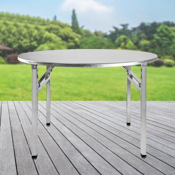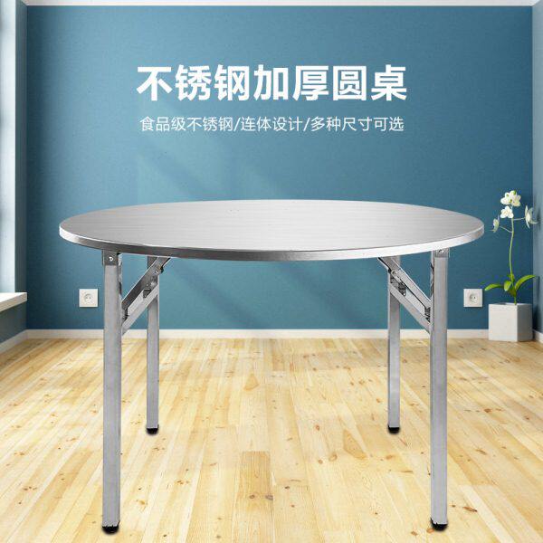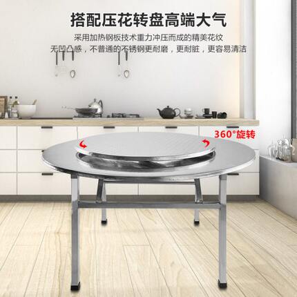 不锈钢大圆桌可折叠桌子加厚10人夜宵桌家用酒店饭店用大餐桌12人