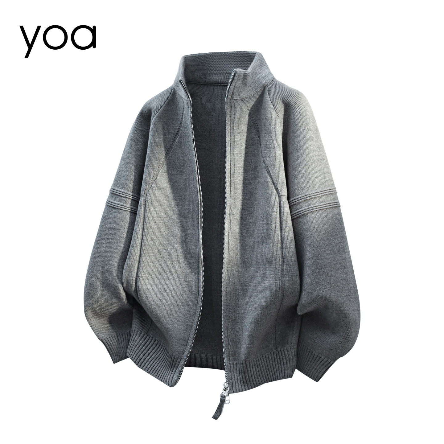 YOA日系重磅拉链开衫毛衣男女秋冬季韩系简约针织衫外套美式上衣