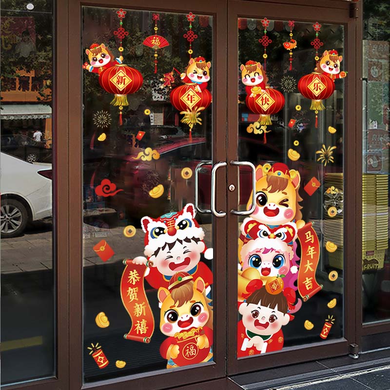 2026新年马年装饰玻璃门贴纸春节过年氛围静电窗花贴窗贴元旦布置