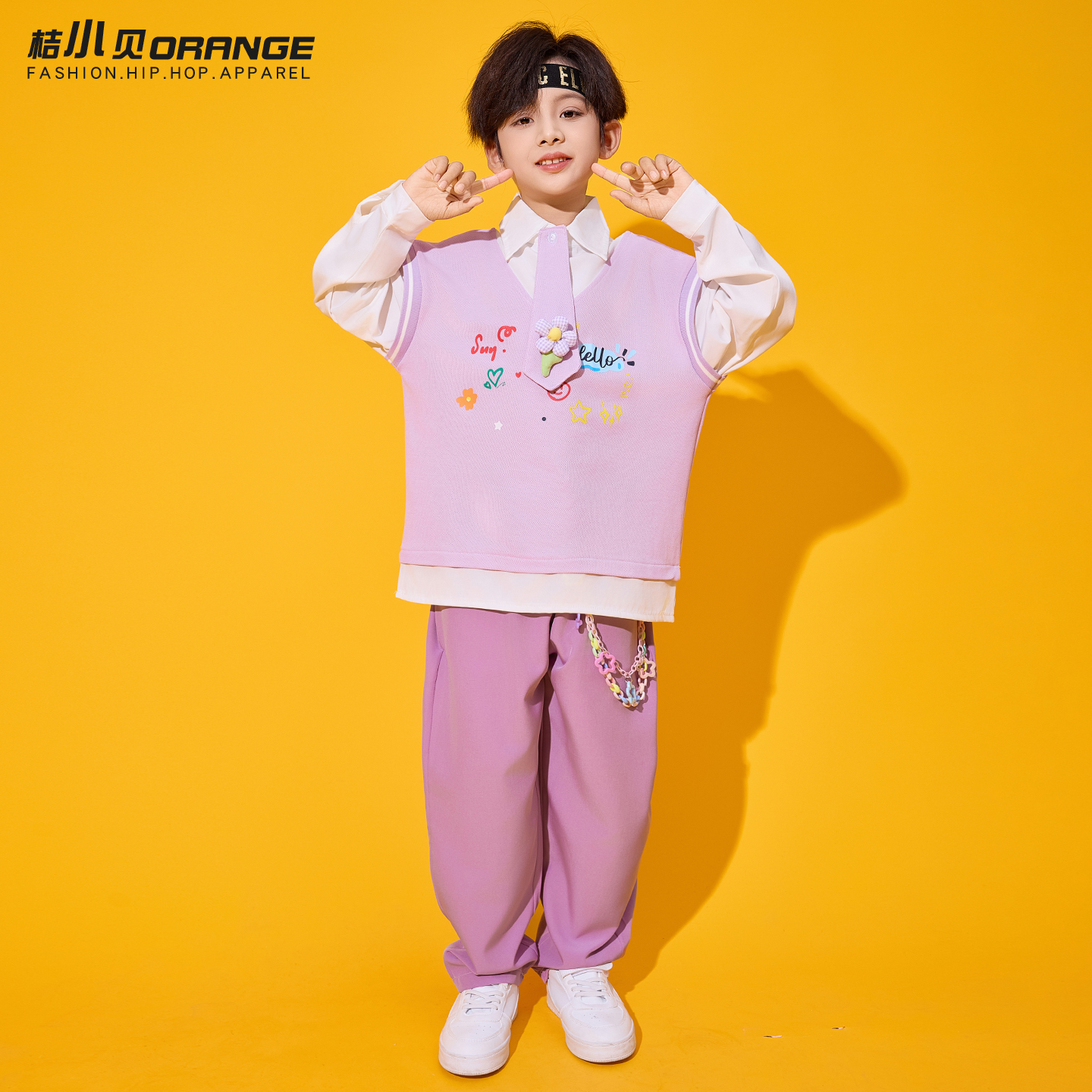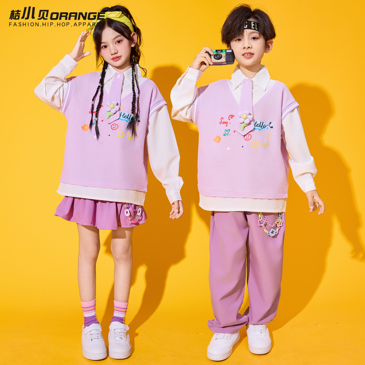运动会开幕式服装小学生团体班服套装粉色假两件儿童啦啦队演出服