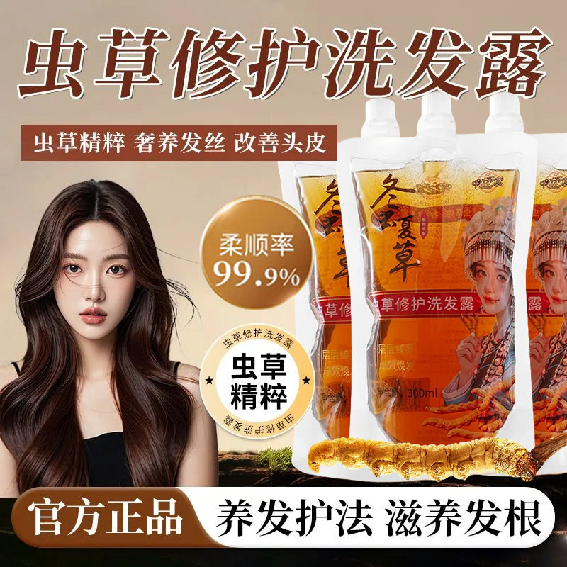 【升级加强版】拍一发三冬虫夏草修护洗发露富含虫草精华从发根黑