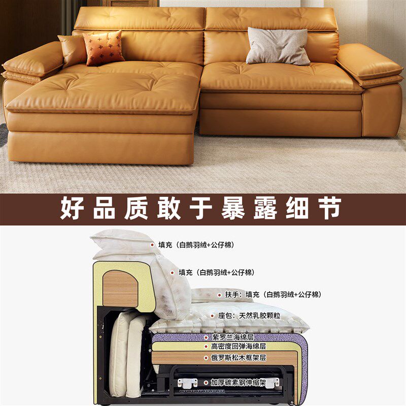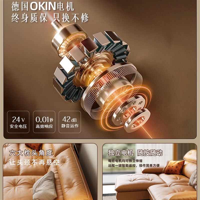2025年新款零靠墙真皮电动沙发床多功I能可调节牛皮小户型直排沙