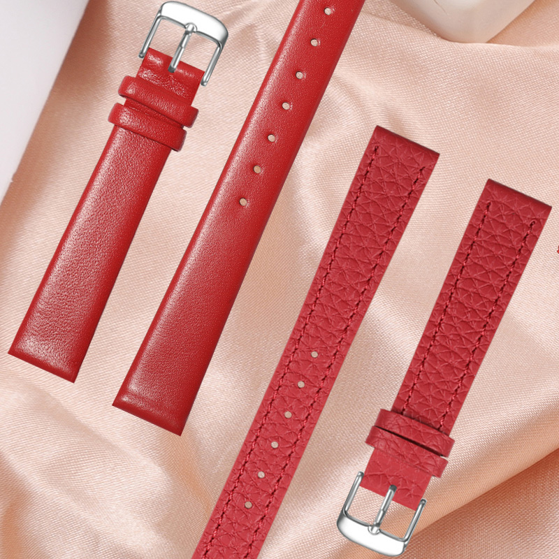 中国红真皮手表带女款代用华为手表WATCH GT4/3/2女表手环B7B3B5B6西铁城宝舵浪琴格雅古尊依波红色表链配件