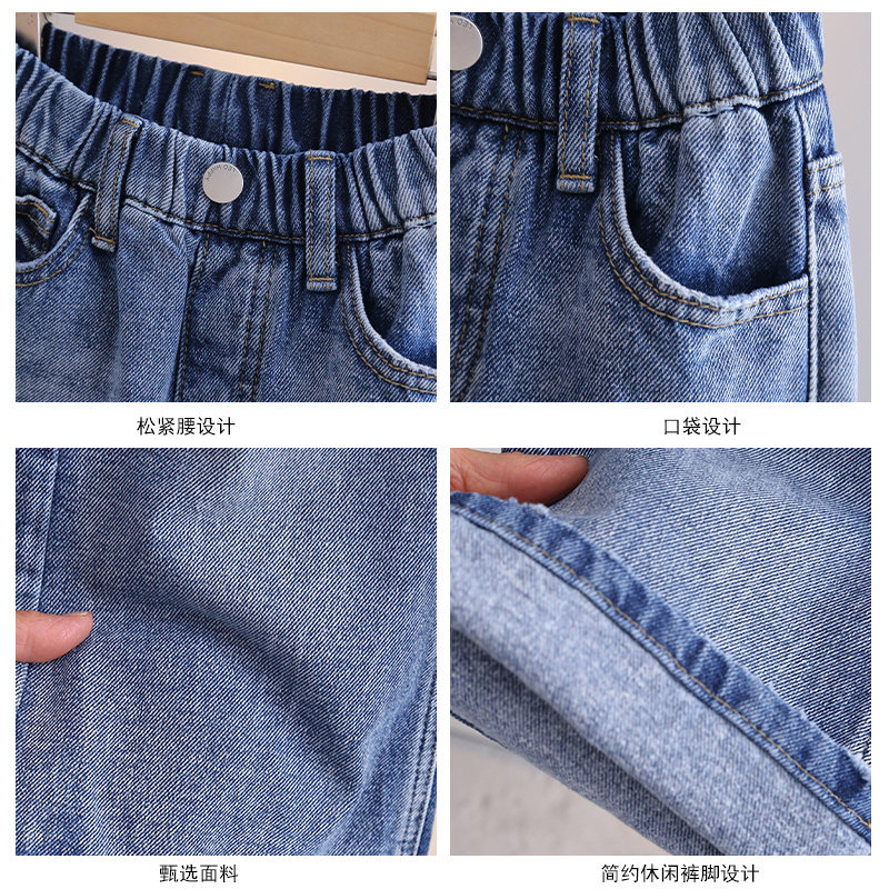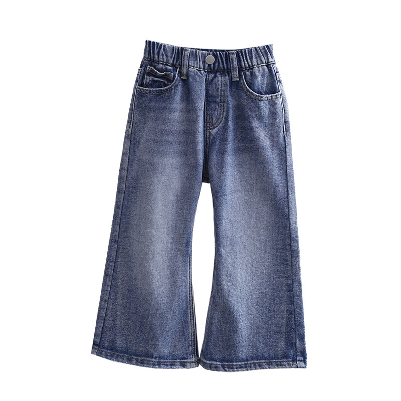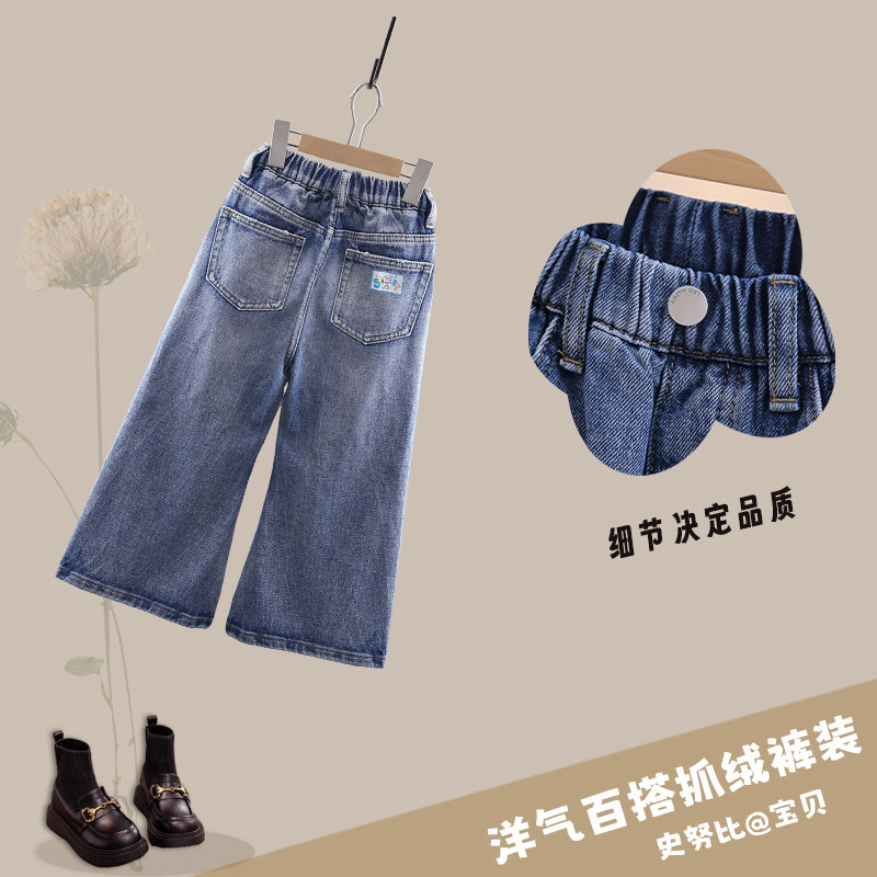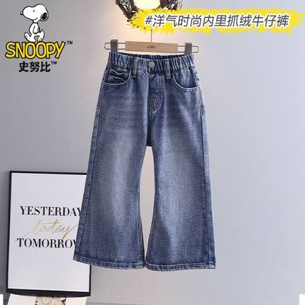 史努比女童裤子春秋冬新款薄绒洋气喇叭裤小女孩宽松舒适牛仔裤