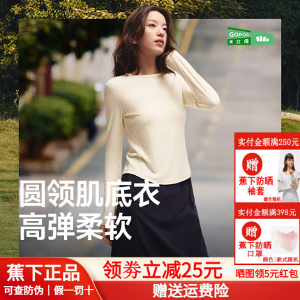 蕉下圆领肌底衣保暖上装修身长袖T恤亲肤女士秋衣内搭上衣打底衫