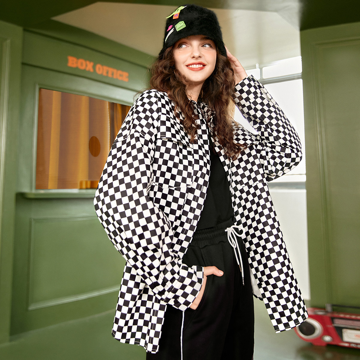 【29/件】EPTISON衬衫女2025春季新款宽松棋盘格印花休闲衬衣外套