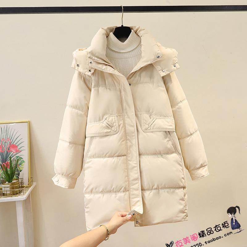 可拆卸帽加厚羽绒棉衣女中长款冬装新款大码加厚棉袄宽松棉服外套