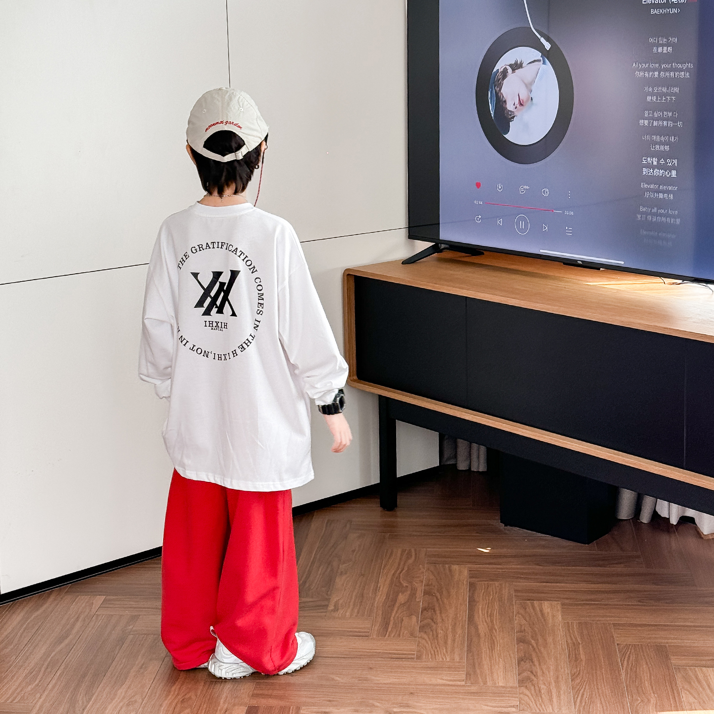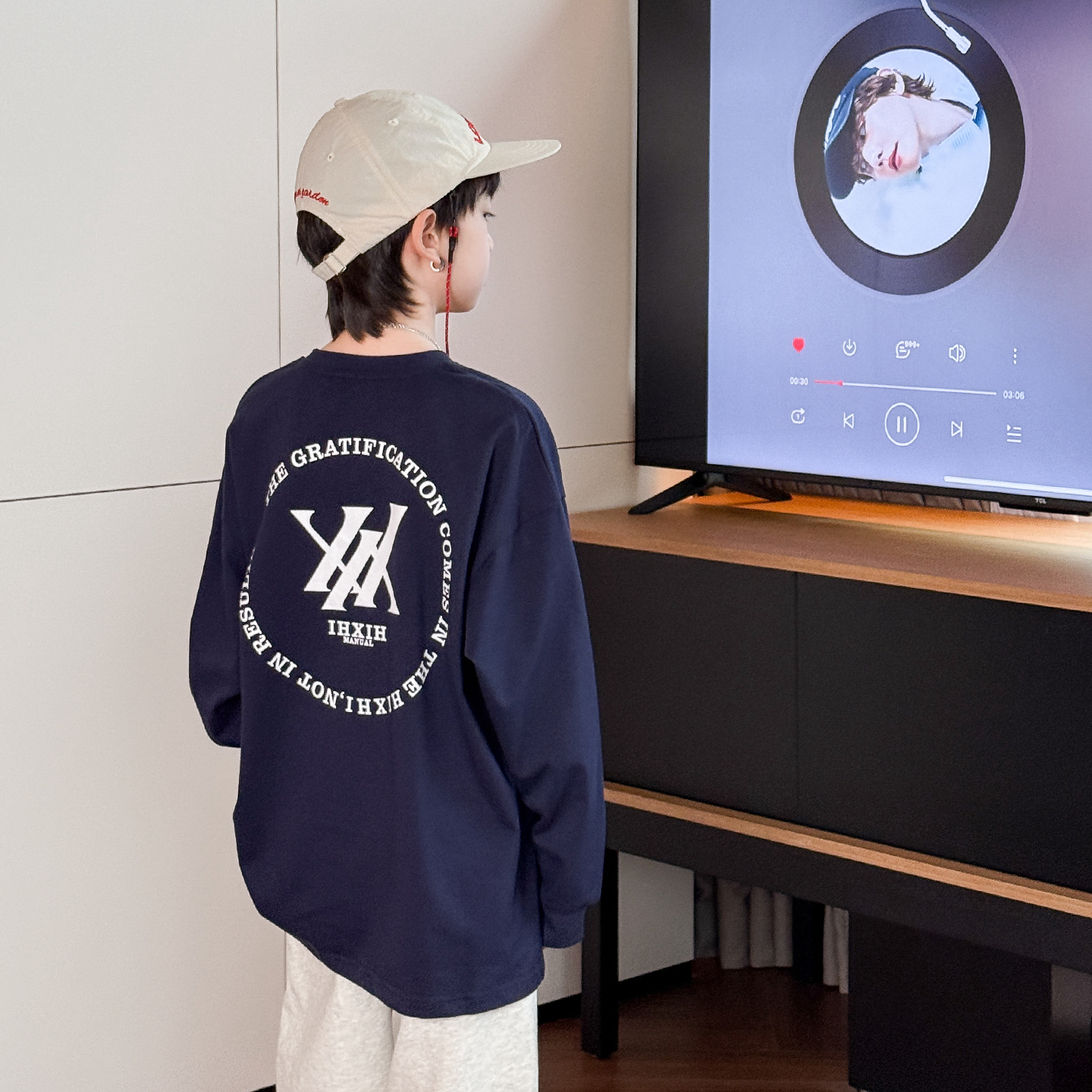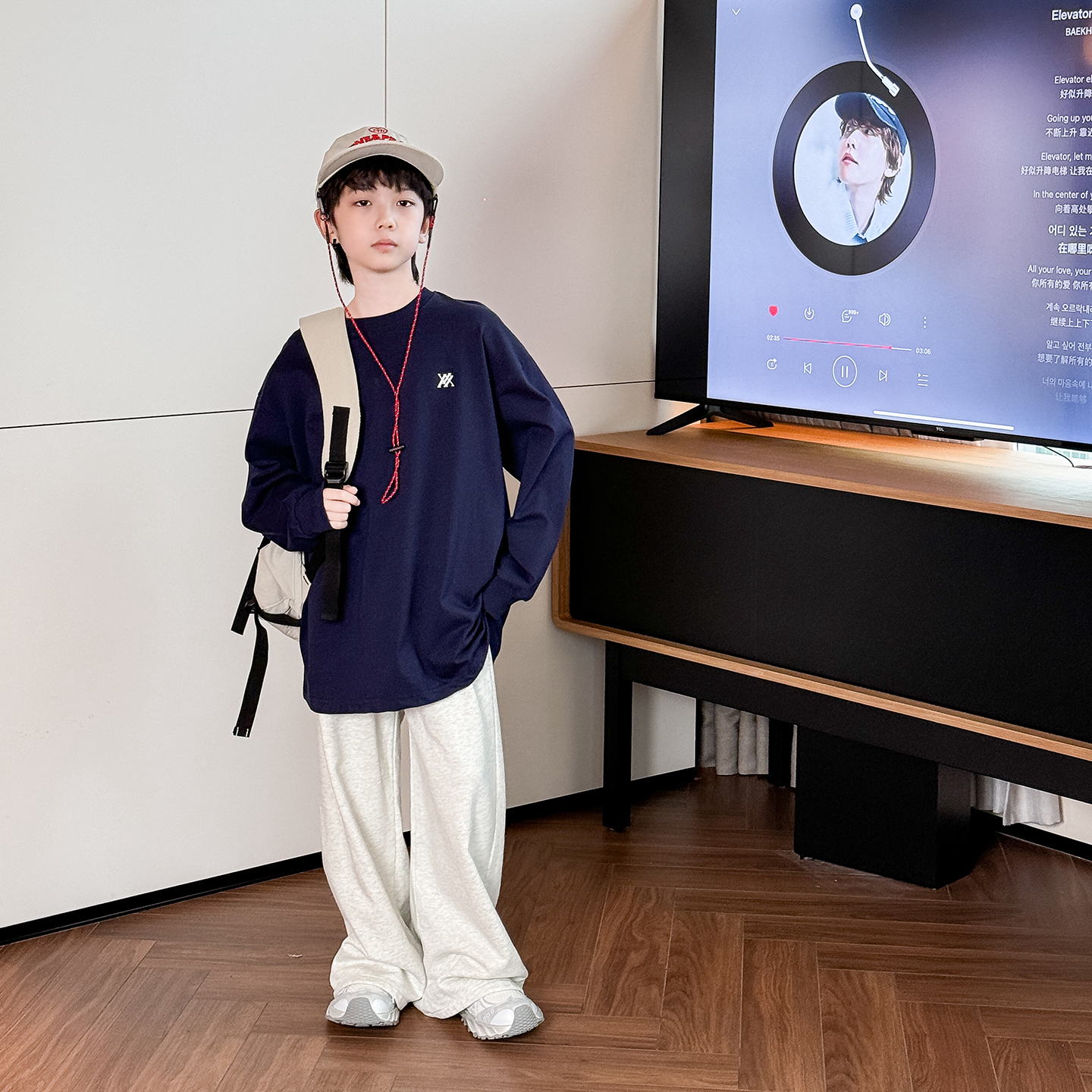 男童T恤长袖2025秋装新款中大童纯棉上衣儿童简约百搭打底衫体恤