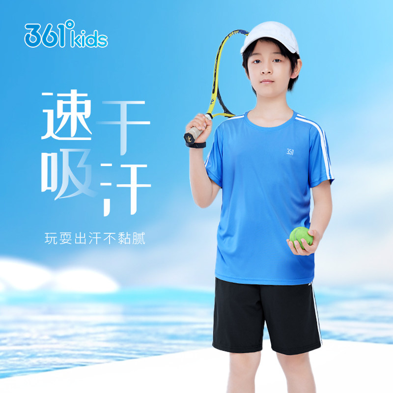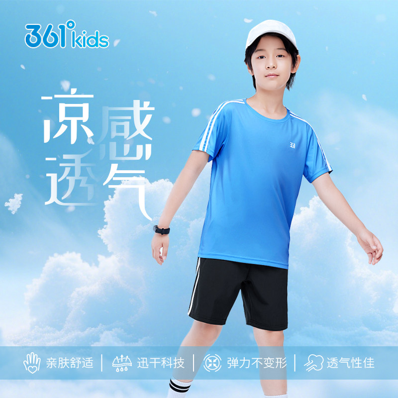 【迅干科技】361°童装夏季男女童运动速干T恤短裤冰肤弹性套装