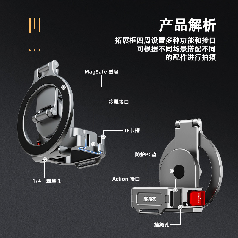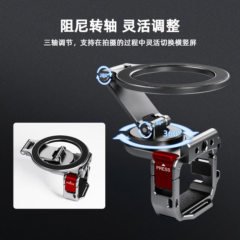 适用于大疆Pocket3磁吸支架车载吸盘套装Osmo Action4/5Pro/6相机多功能金属Magsafe手机提词器支架配件