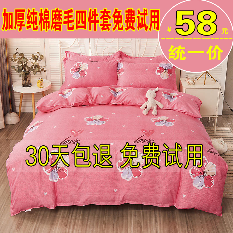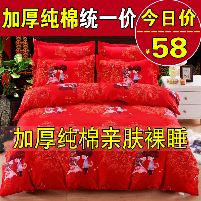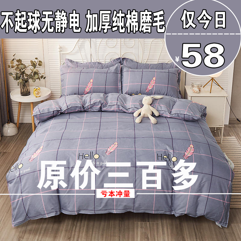 磨毛纯棉四件套加厚全棉简约床单婚庆被套三件套冬季高端床上用品