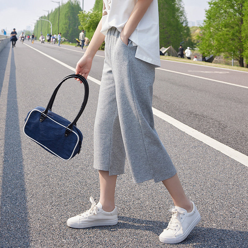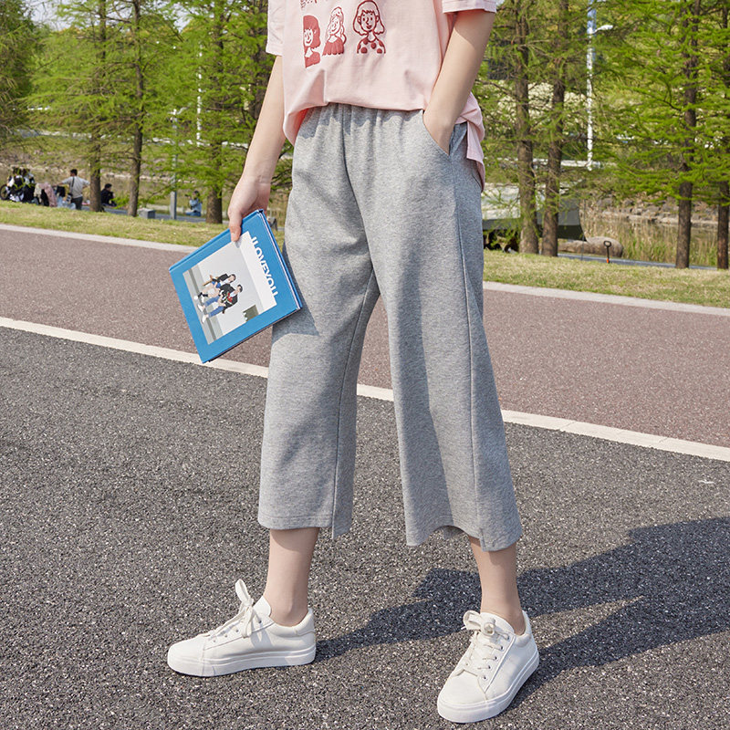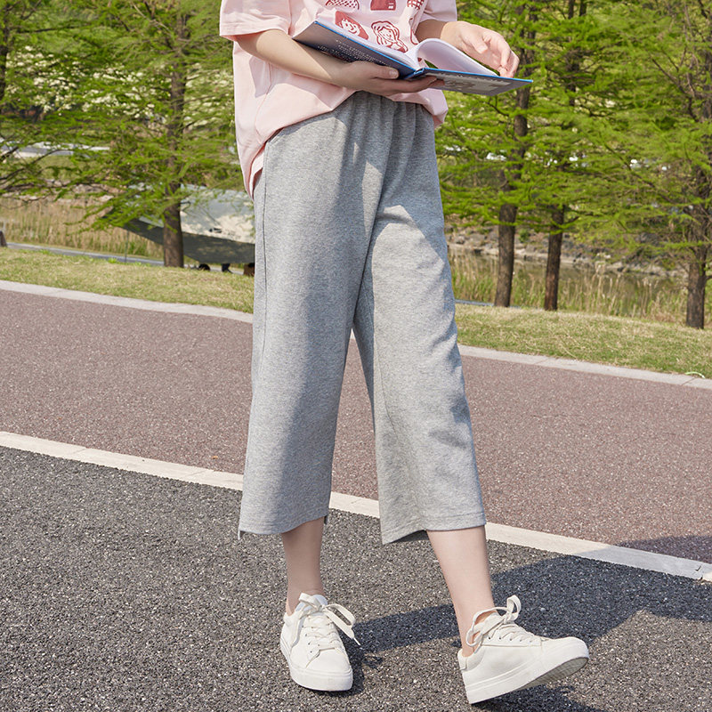 少女大童夏装2025新款时尚松紧腰高中女生七分裤子初中学生休闲裤