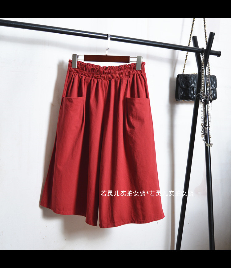 夏装韩版松紧腰高腰大口袋阔腿裤七分裤宽松显瘦百搭休闲裤裙裤子