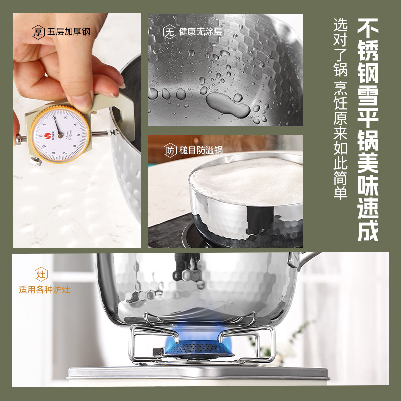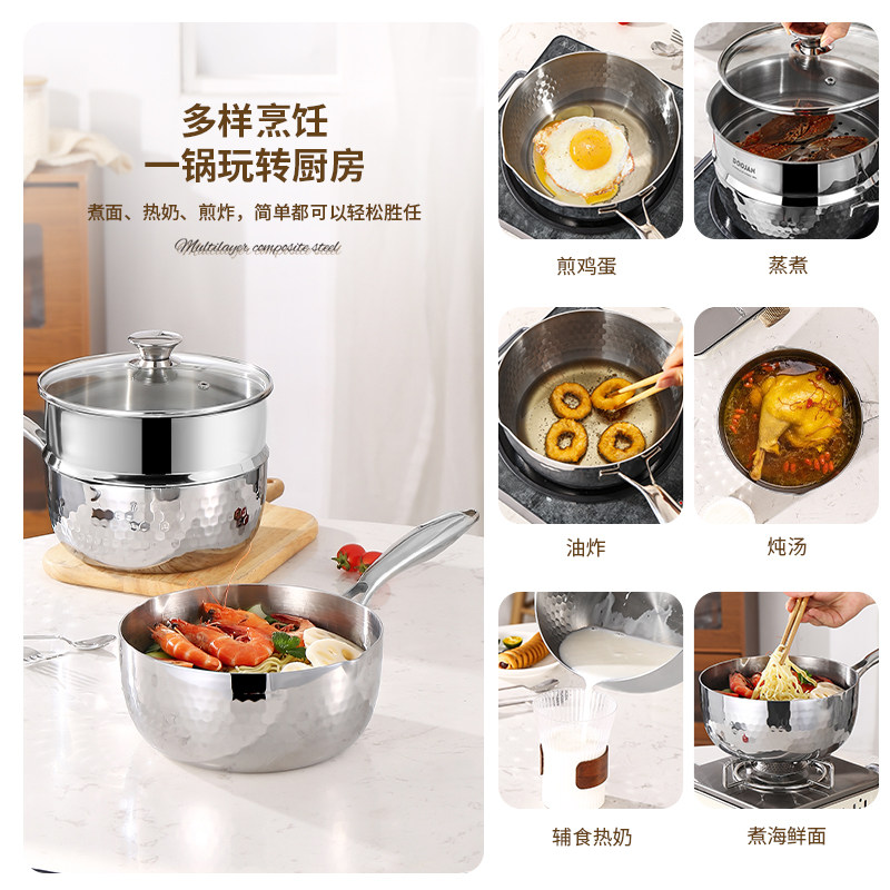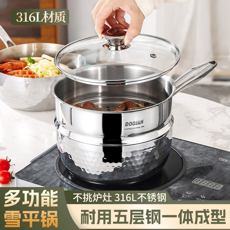 度坚日式雪平锅小奶锅 316L不锈钢家用泡面锅宝宝辅食汤锅无涂层